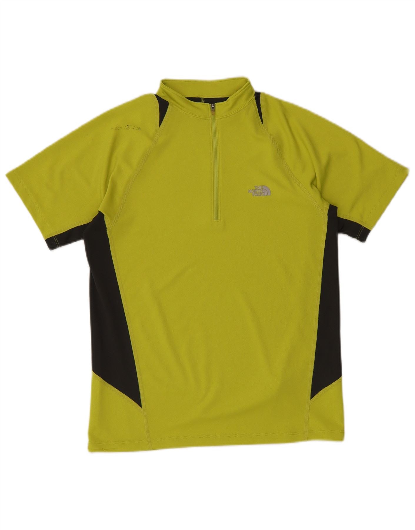 THE NORTH FACE Mens Zip Neck T-Shirt Top Small Green Colourblock Polyester