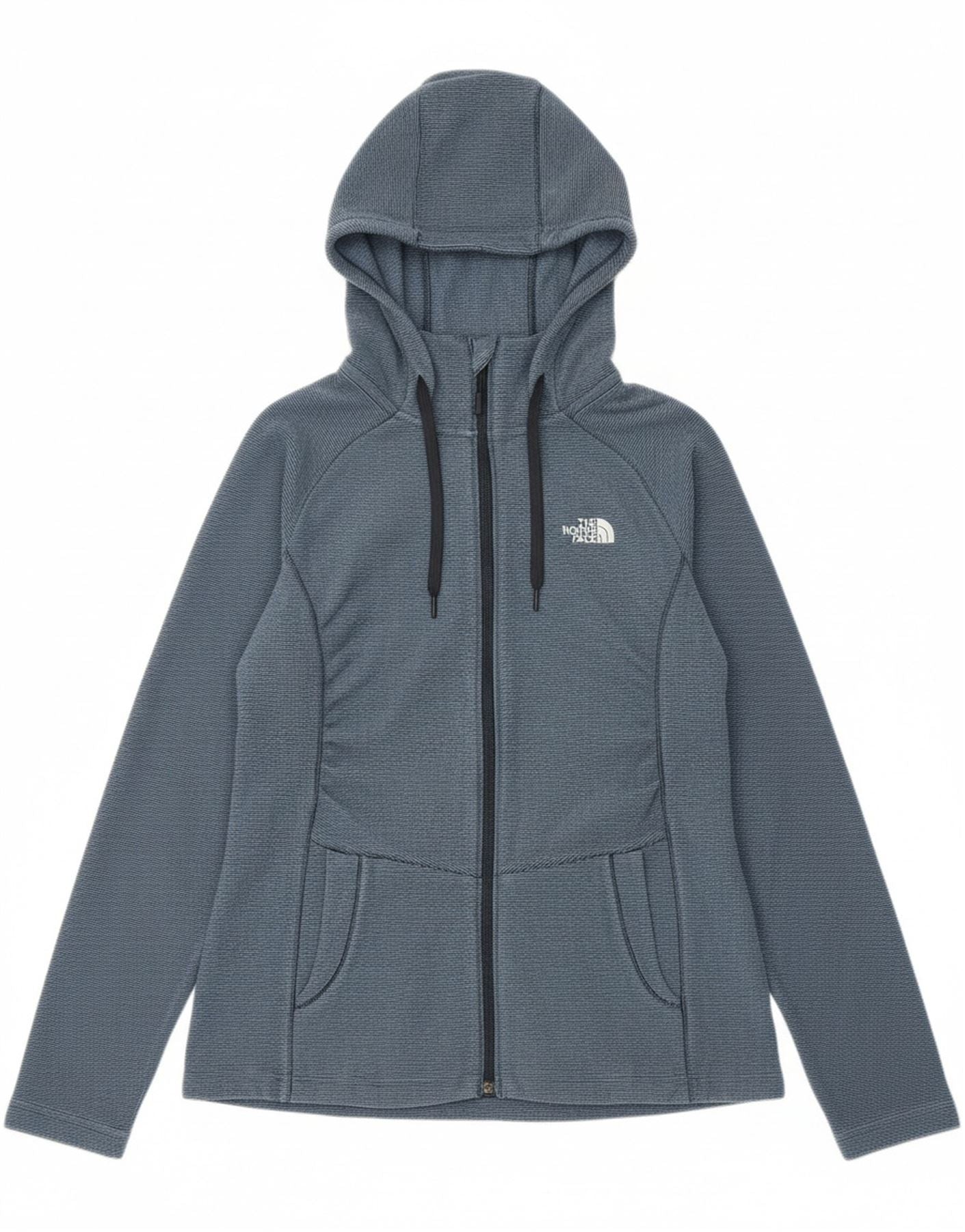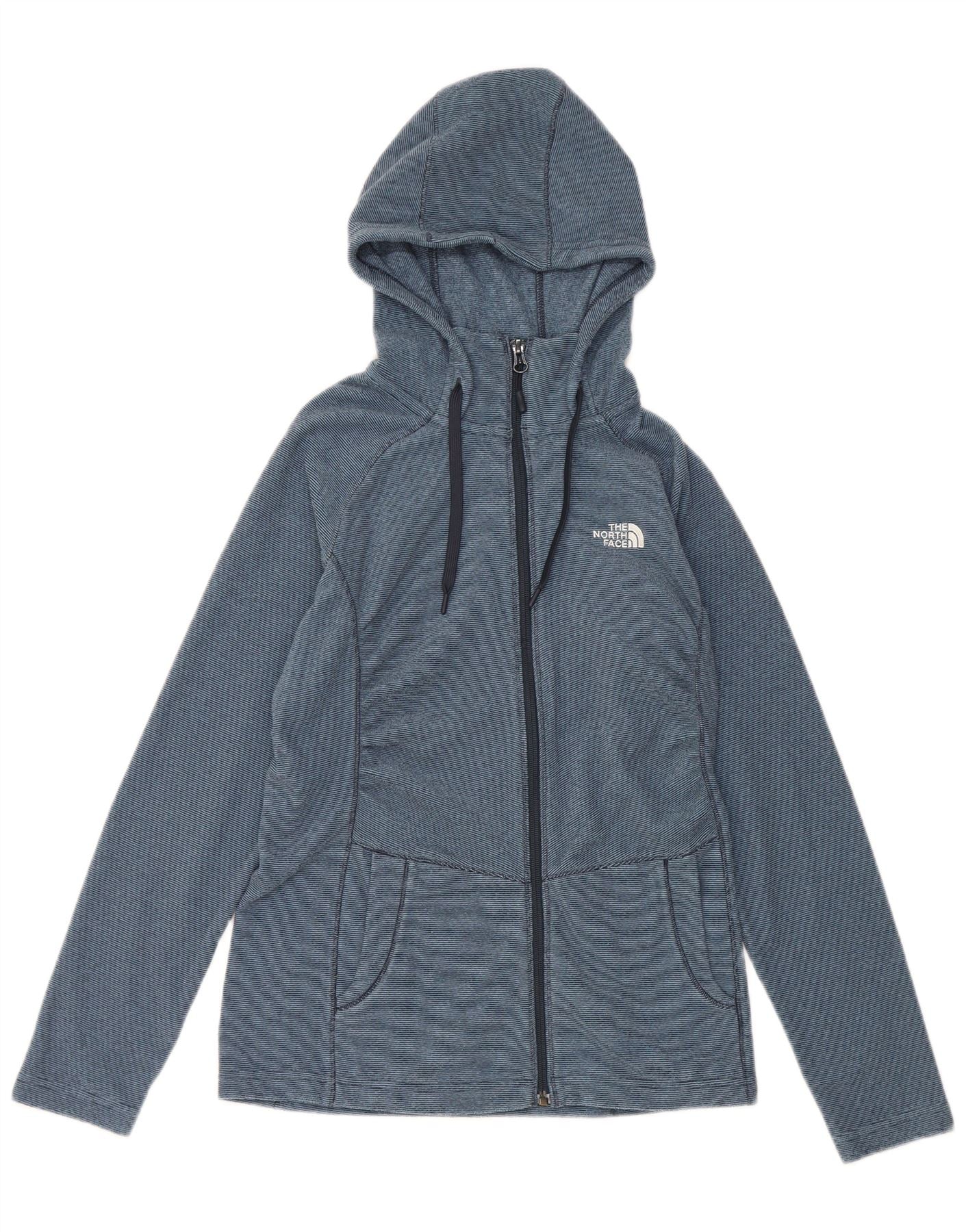 THE NORTH FACE Womens Fleece Zip Hoodie Sweater UK 10 Small Blue Pinstripe