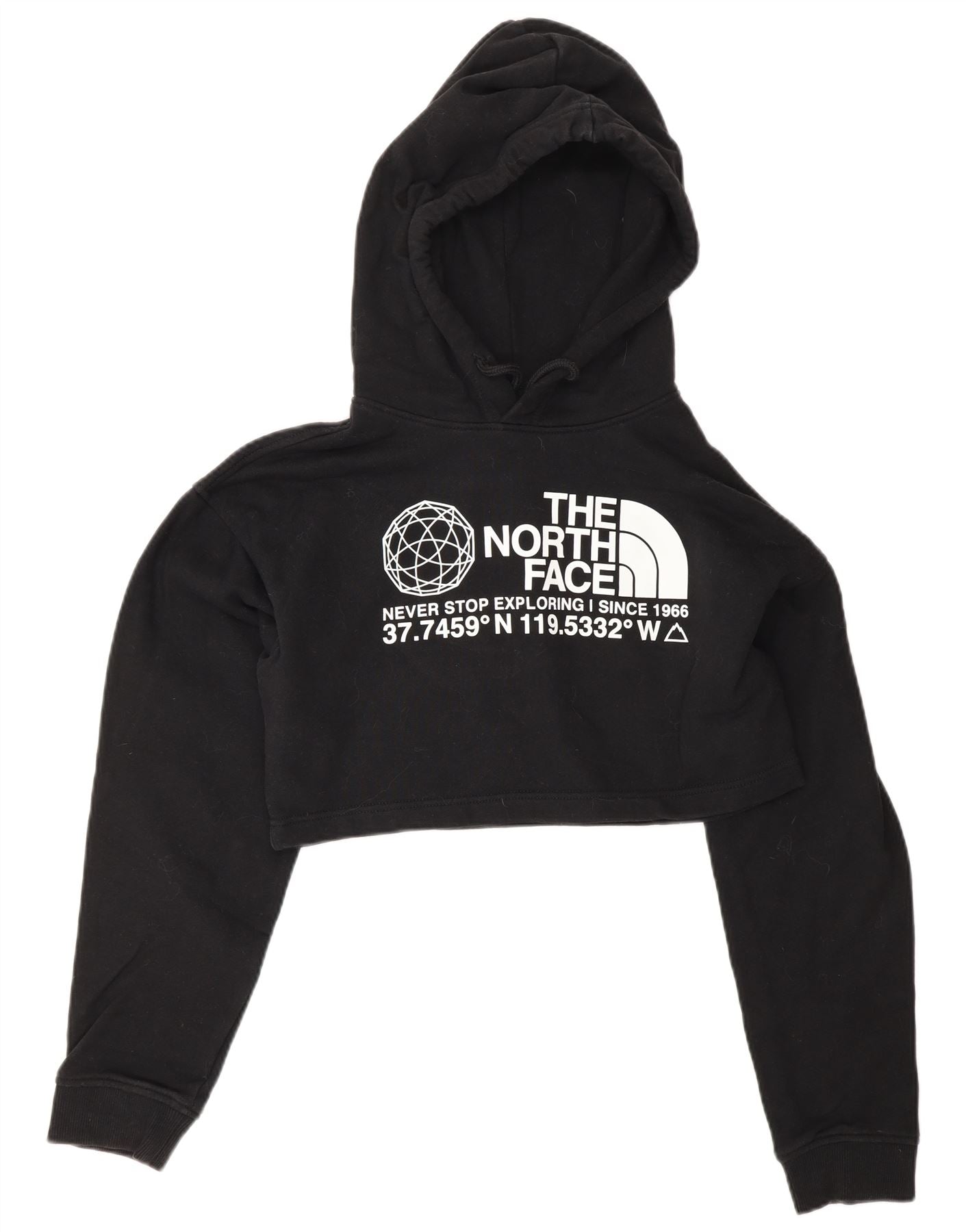 THE NORTH FACE Womens Oversized Crop Graphic Hoodie Jumper UK 6 XS Black