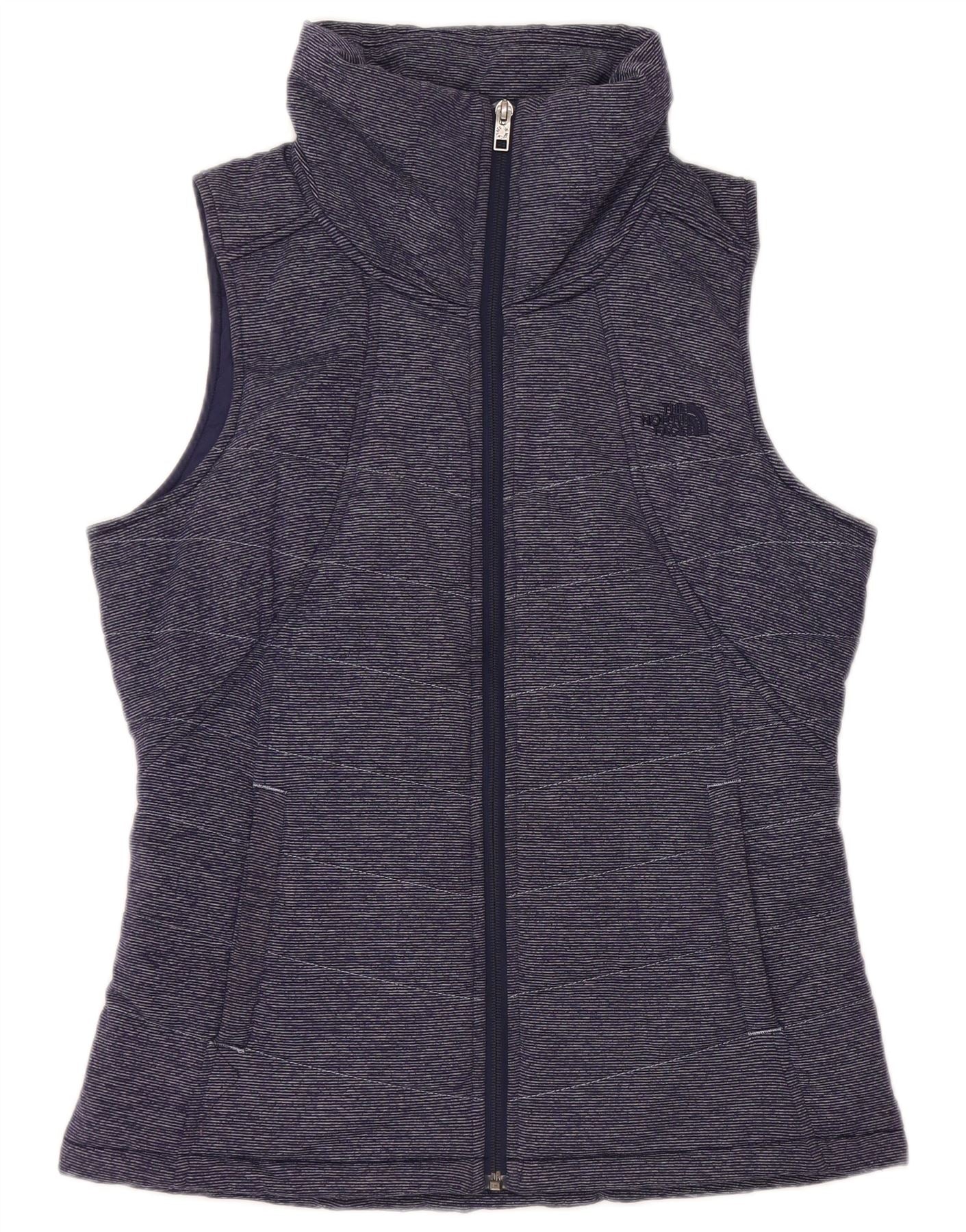 THE NORTH FACE Womens Padded Gilet UK 14 Medium Navy Blue Pinstripe