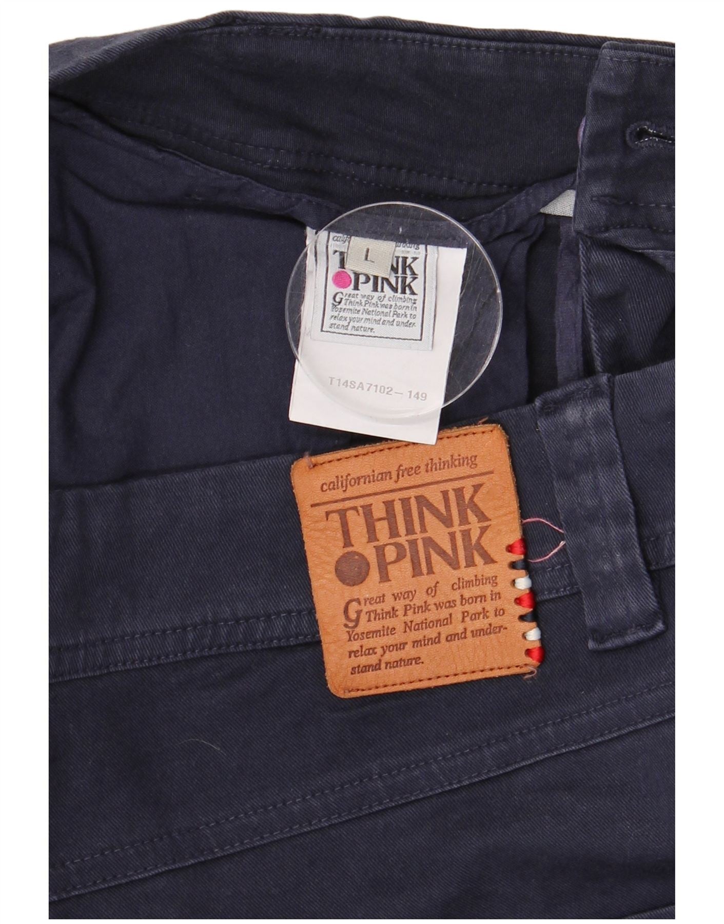 THINK PINK Mens Straight Chino Trousers Large W34 L33 Navy Blue Cotton