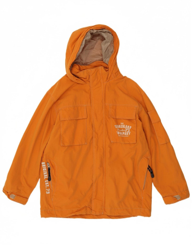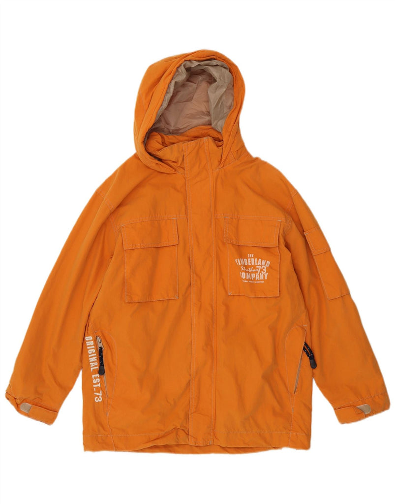 TIMBERLAND Boys Graphic Hooded Utility Jacket 11-12 Years Orange Cotton
