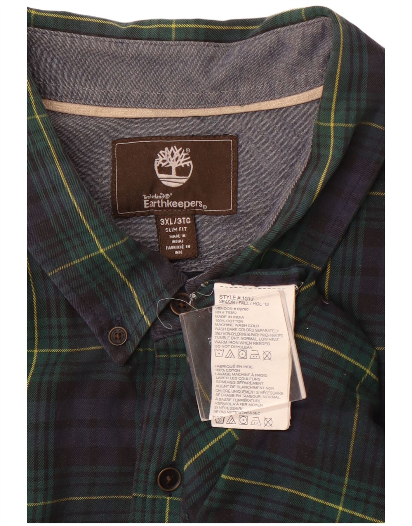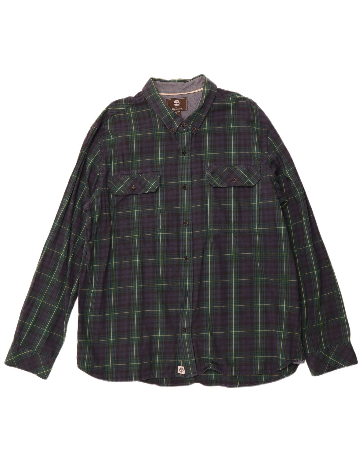 TIMBERLAND Mens Earthkeepers Slim Fit Flannel Shirt 3XL Navy Blue Check