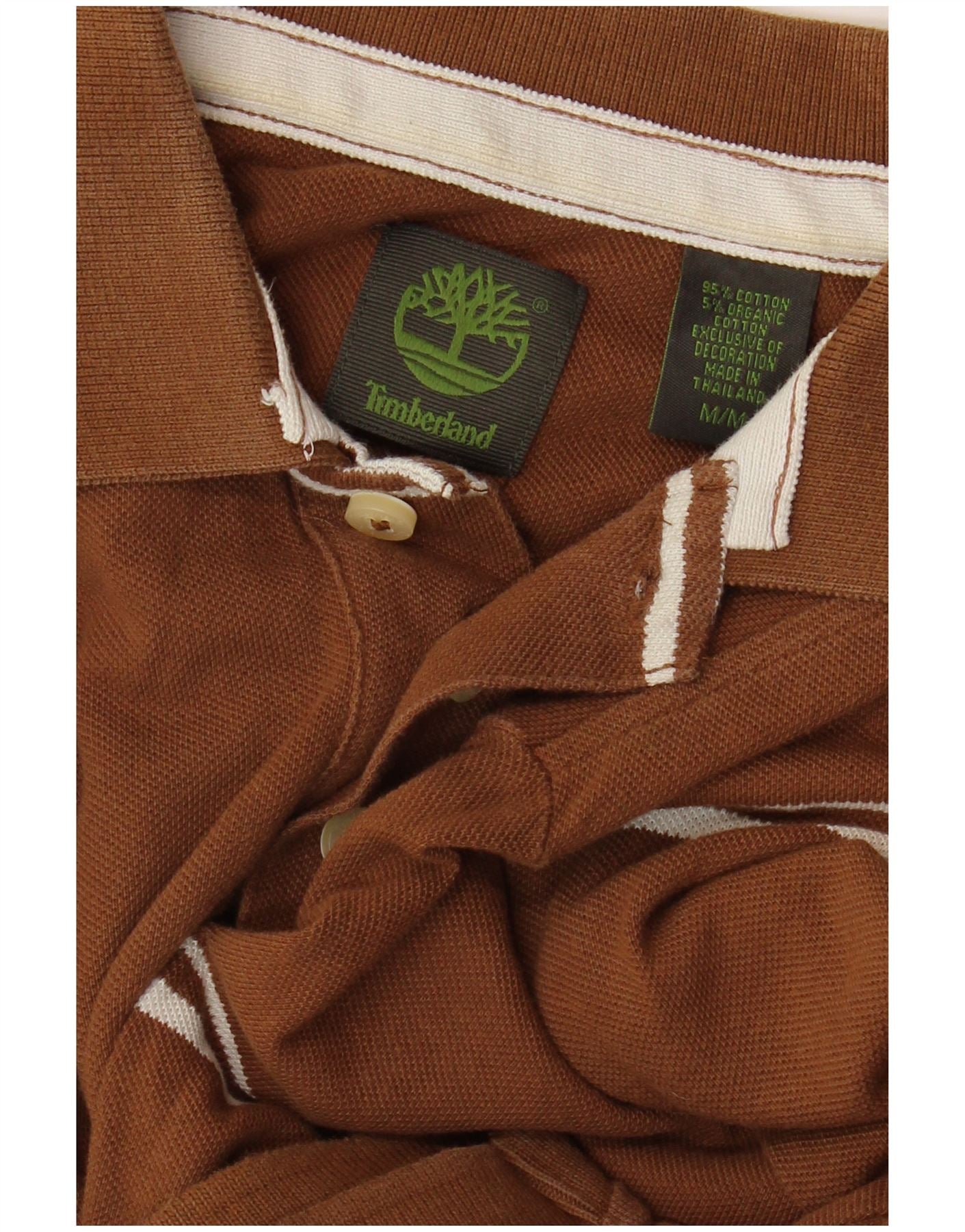 TIMBERLAND Mens Polo Shirt Medium Brown Striped Cotton