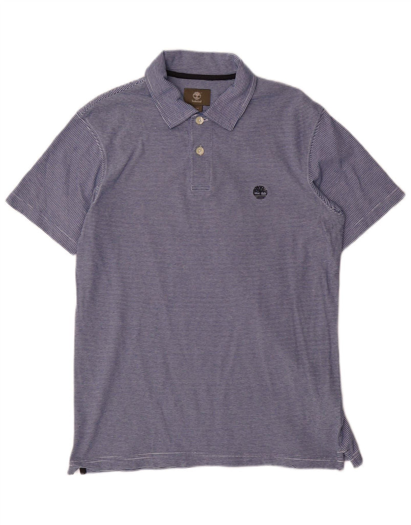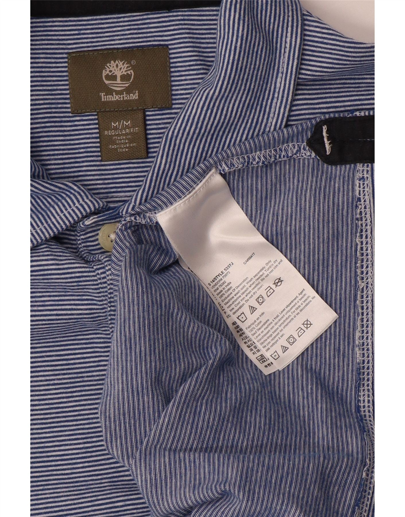 TIMBERLAND Mens Regular Fit Polo Shirt Medium Blue Striped Cotton
