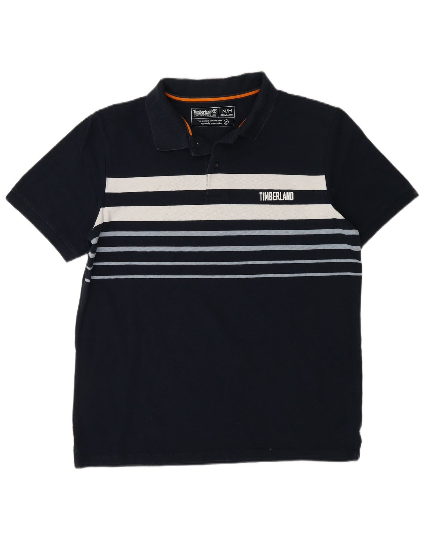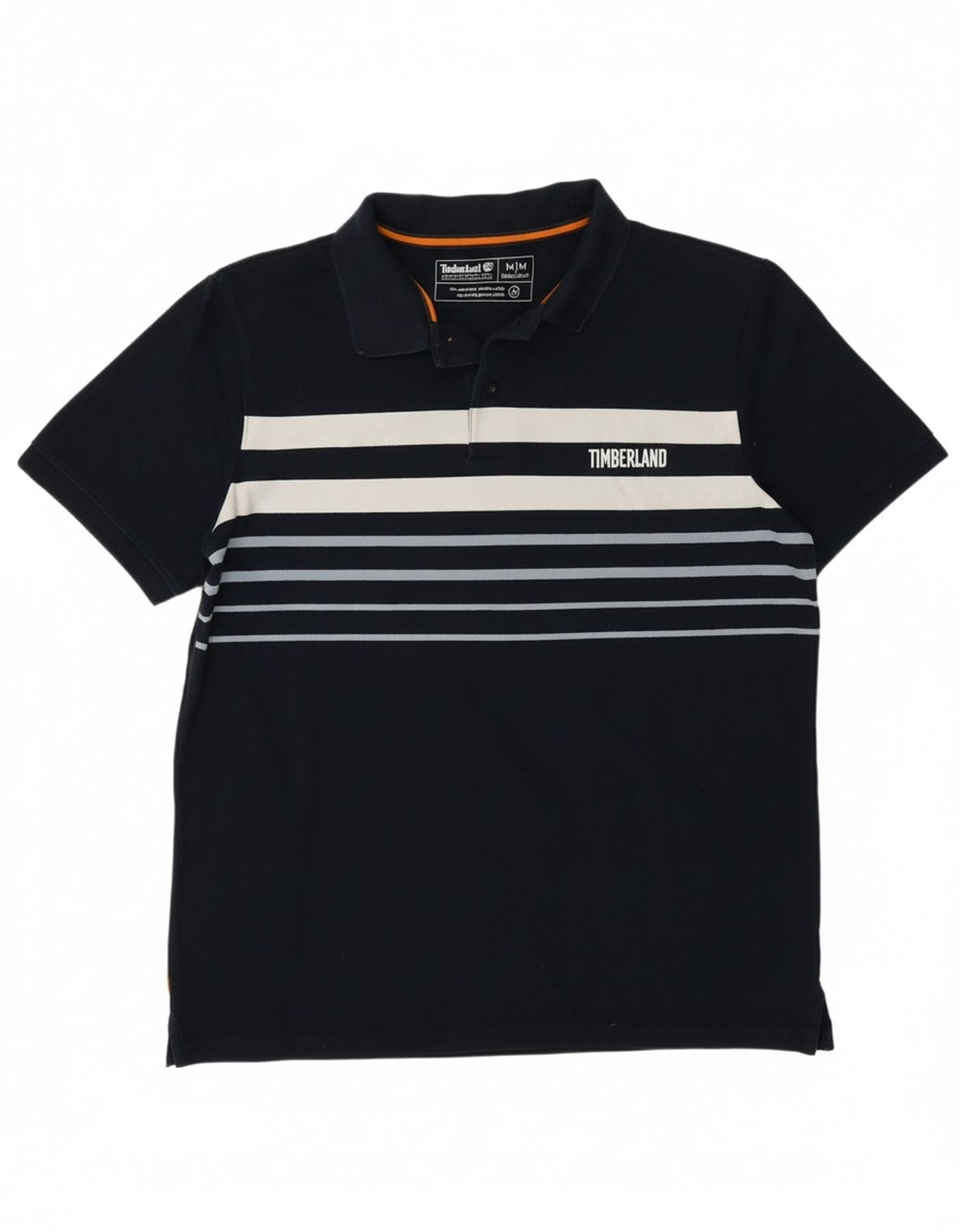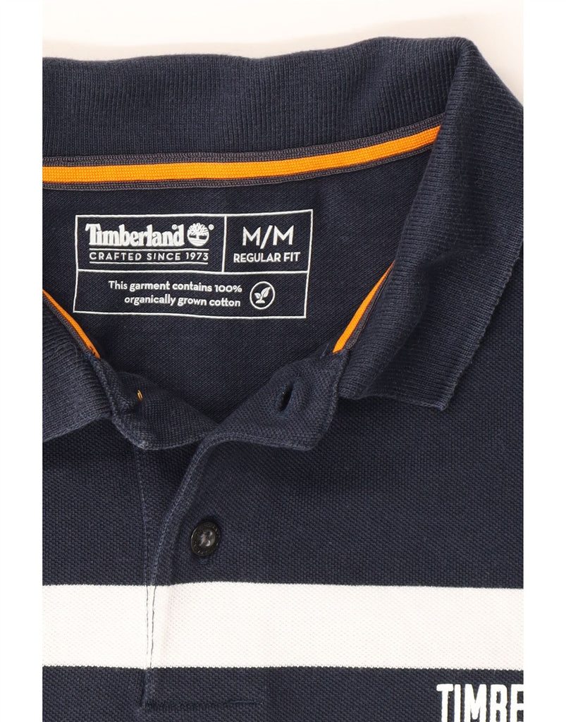 TIMBERLAND Mens Regular Fit Polo Shirt Medium Navy Blue Striped Cotton