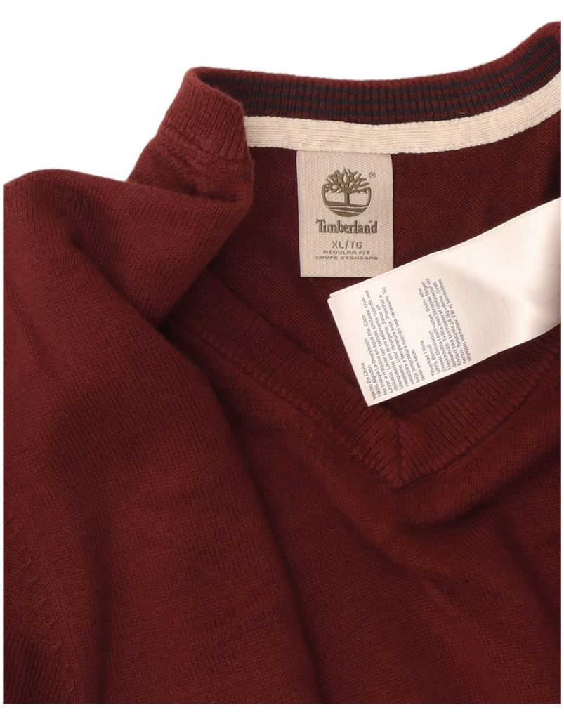 TIMBERLAND Mens Regular Fit V-Neck Jumper Sweater XL Burgundy Cotton