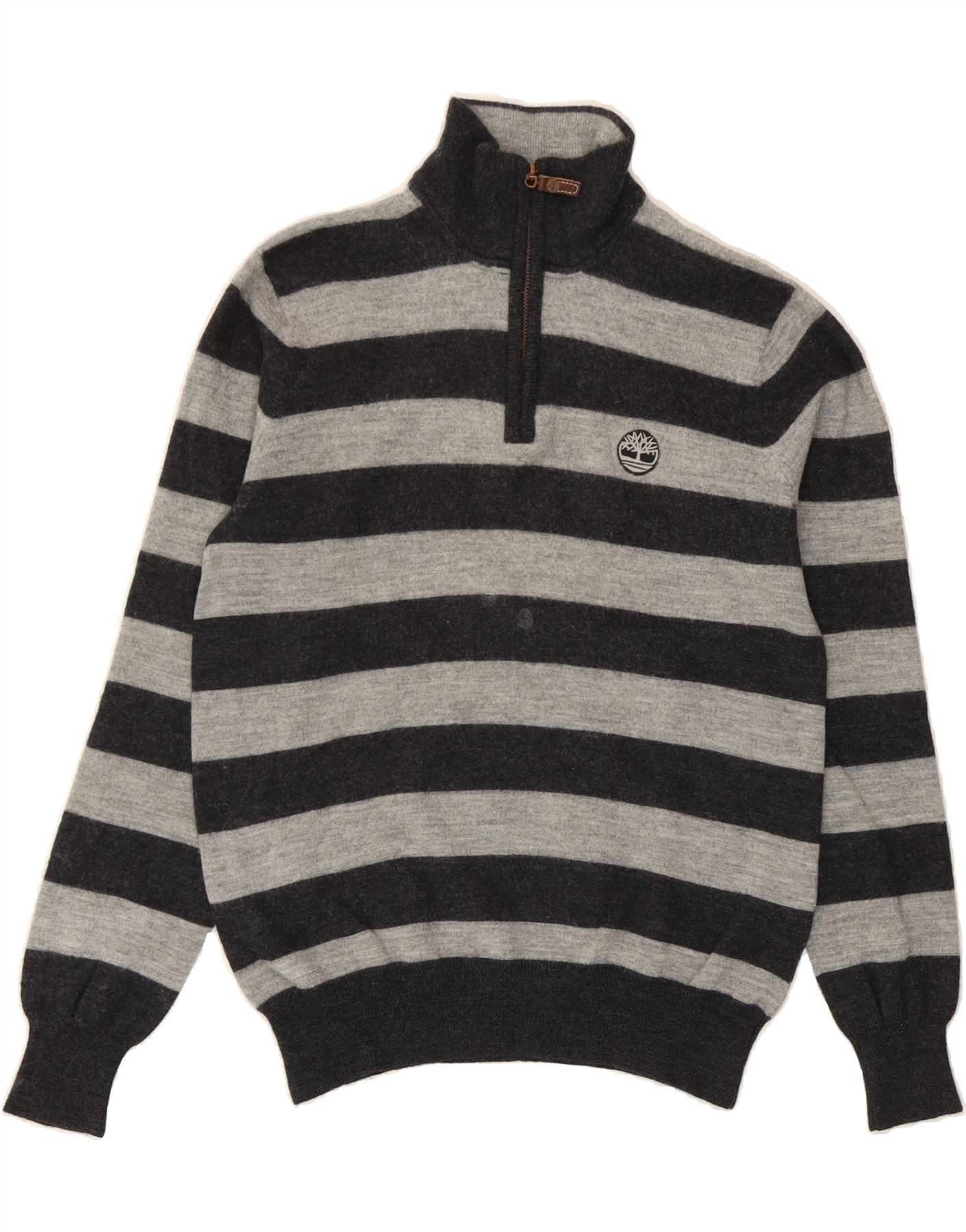 TIMBERLAND Mens Regular Fit Zip Neck Jumper Sweater Medium Grey Striped
