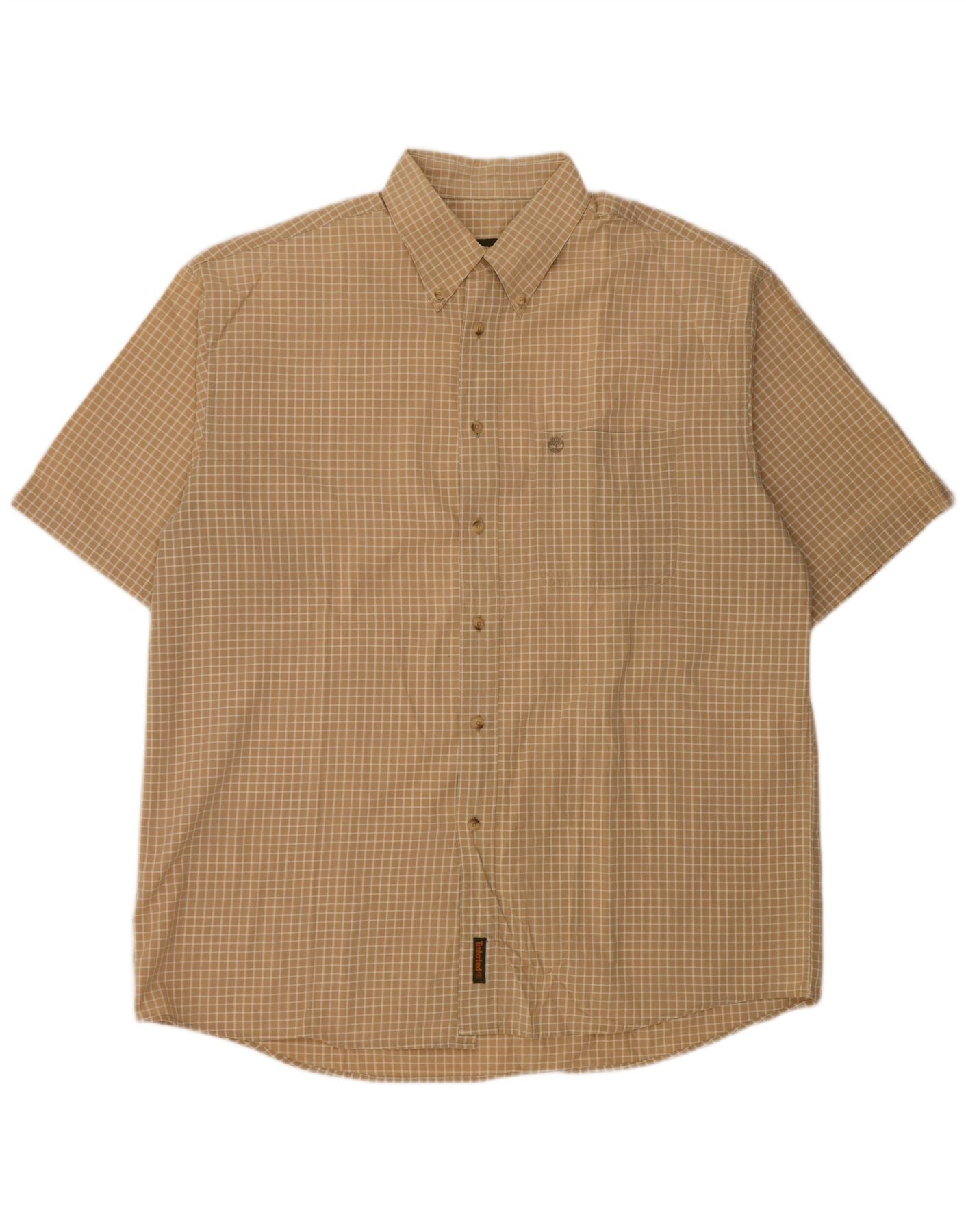 Timberland Mens Short Sleeve Shirt Large Beige Check Cotton