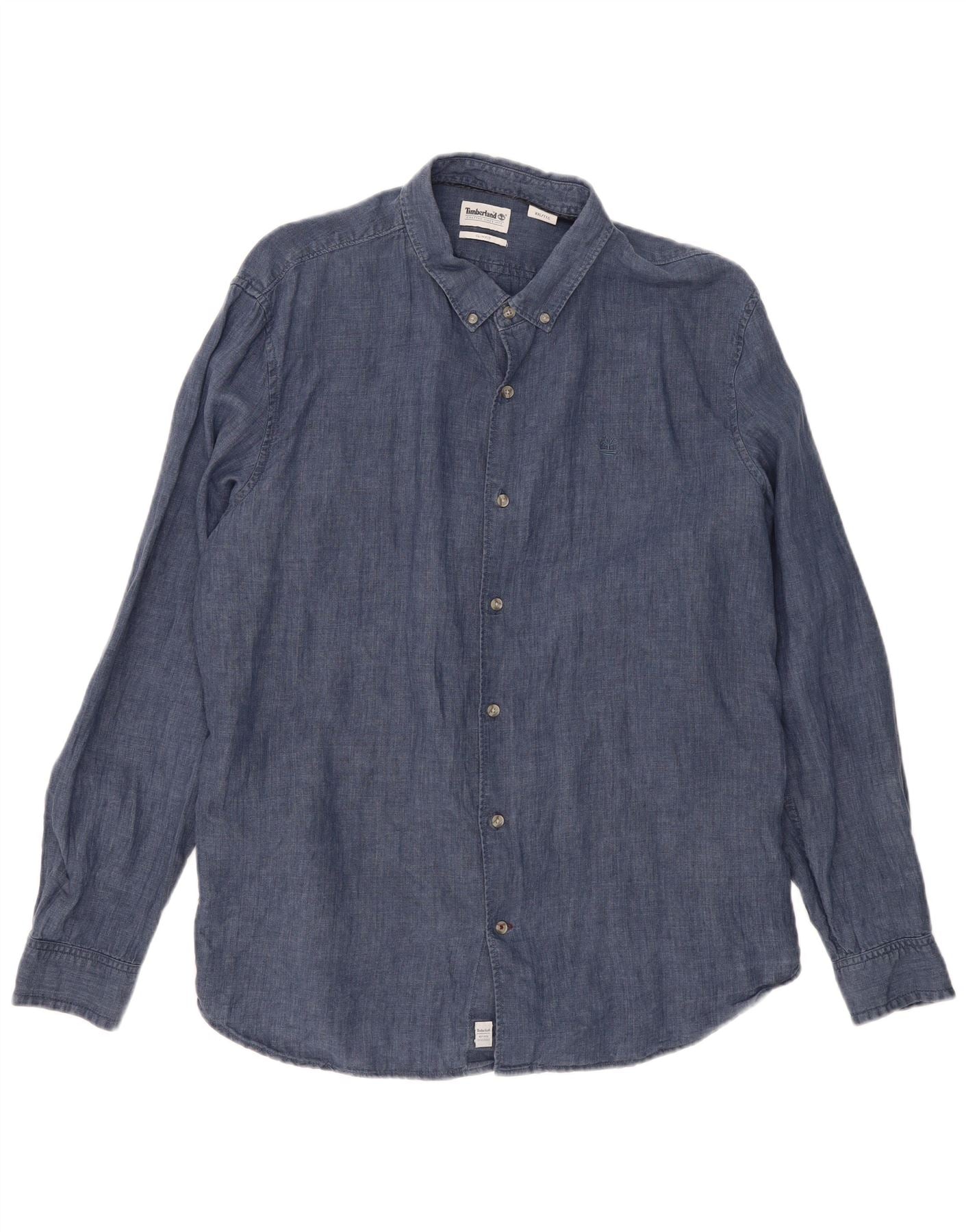 TIMBERLAND Mens Slim Fit Shirt 2XL Navy Blue Linen