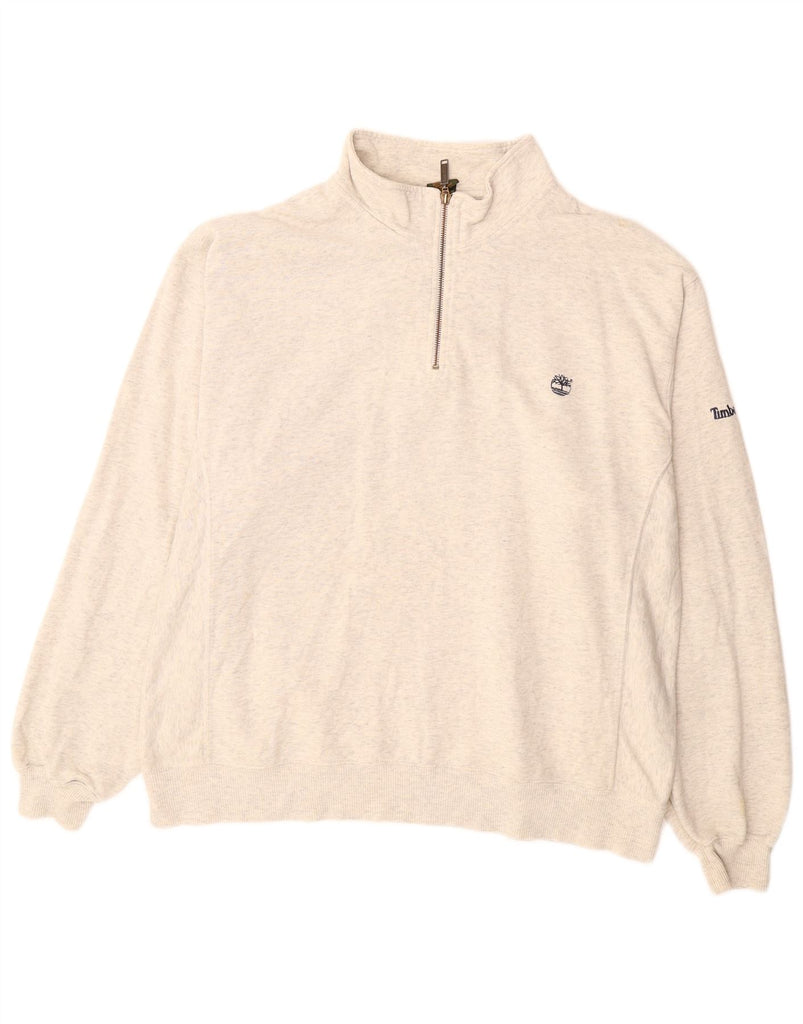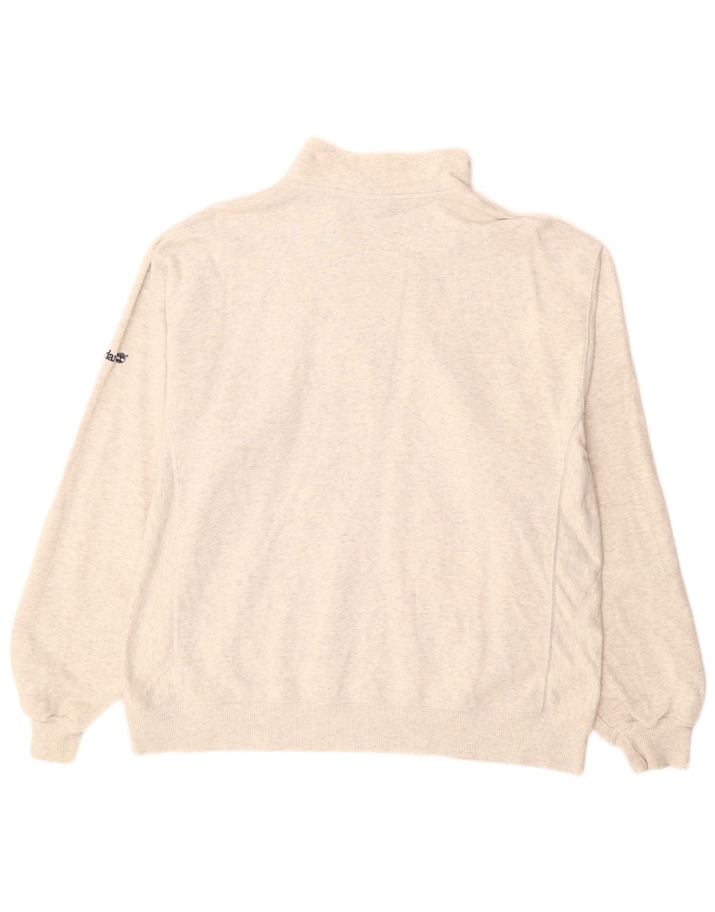 TIMBERLAND Mens Zip Neck Sweatshirt Jumper Large Off White Flecked Cotton