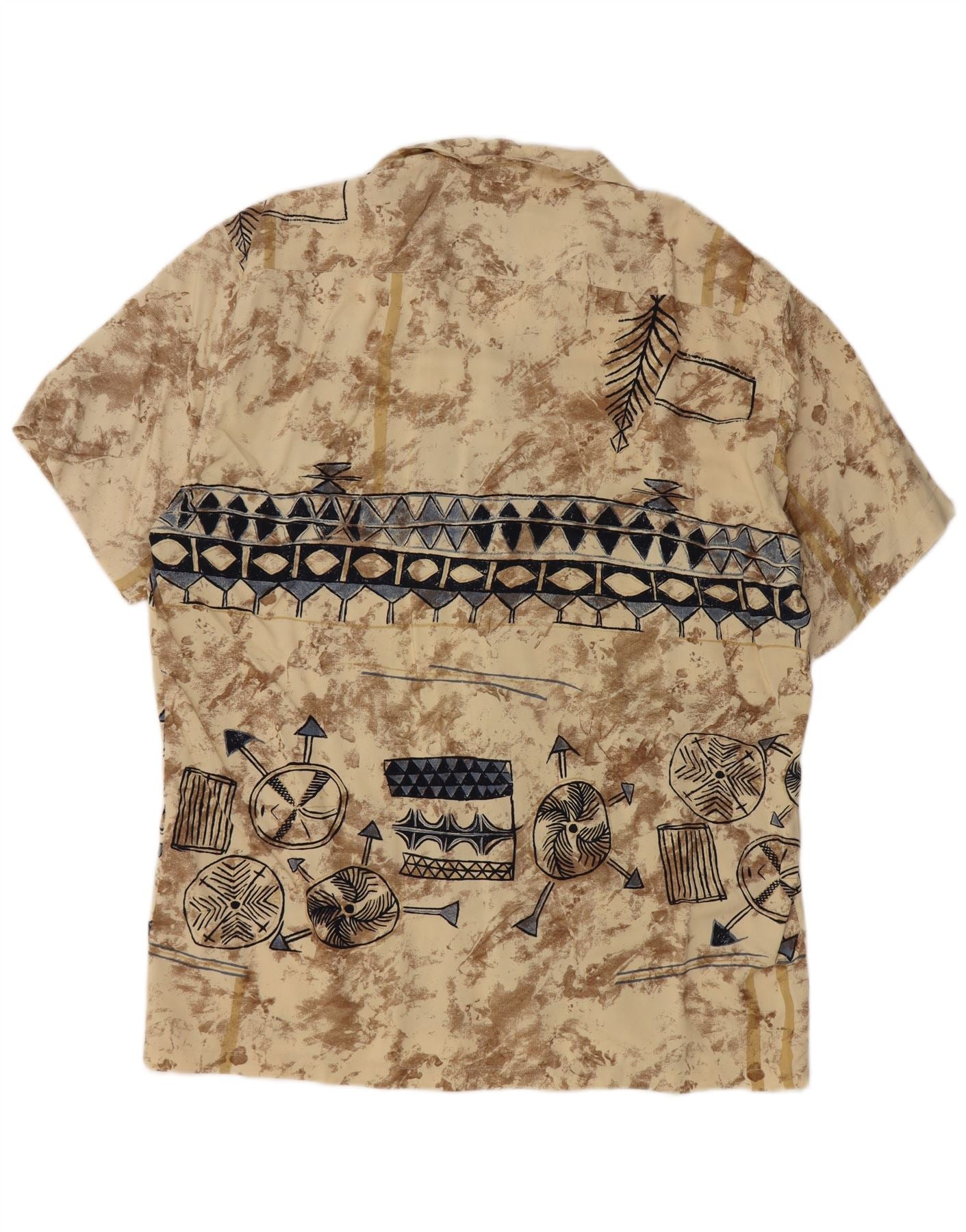 TIPO' S Mens Short Sleeve Shirt Large Beige Geometric Viscose