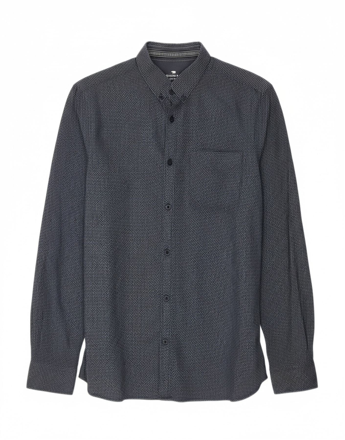 TOM TAILOR Mens Fitted Shirt Medium Navy Blue Geometric Cotton