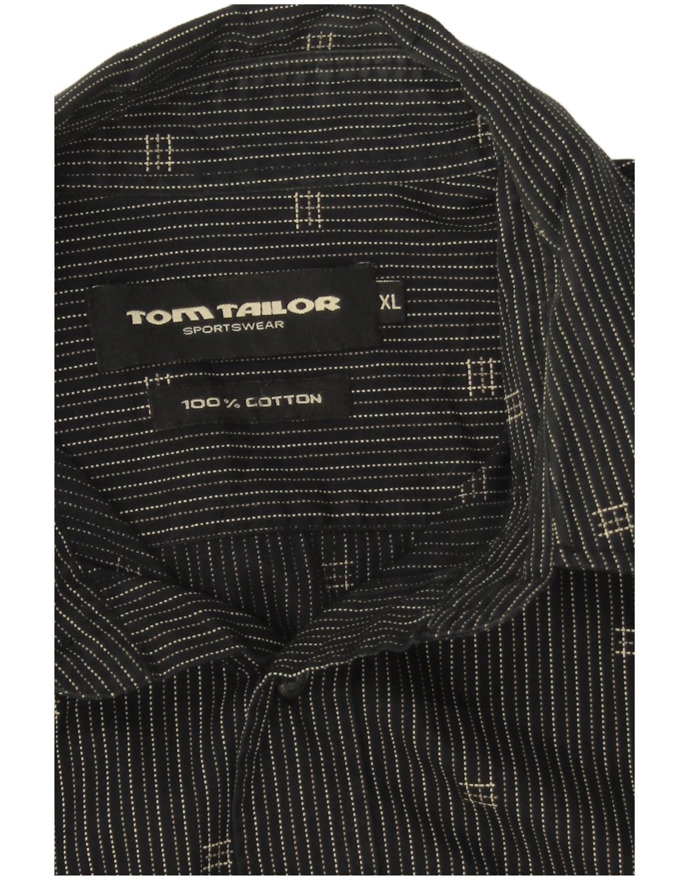 TOM TAILOR Mens Shirt XL Black Pinstripe Cotton