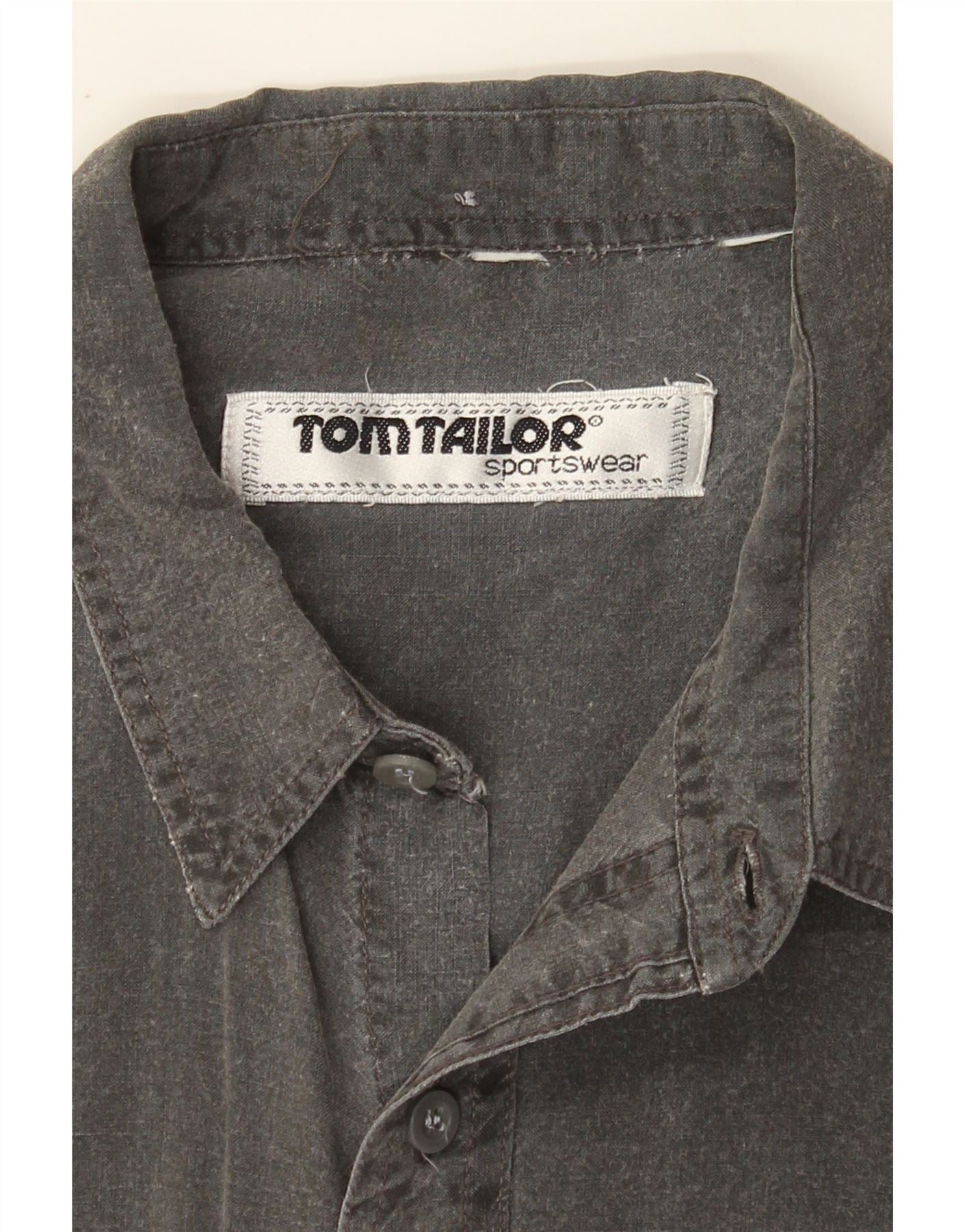 - AI Description: This pre-owned Tom Tailor shirt offers a classic style with a regular fit and short sleeves. The grey, woven fabric features a button closure, collared neckline, and button accents. It includes practical pockets and a collared design. Condition is good, though there is minor overall discoloration. Features include accents of a button and the shirt may have a logo. Ideal for casual wear.