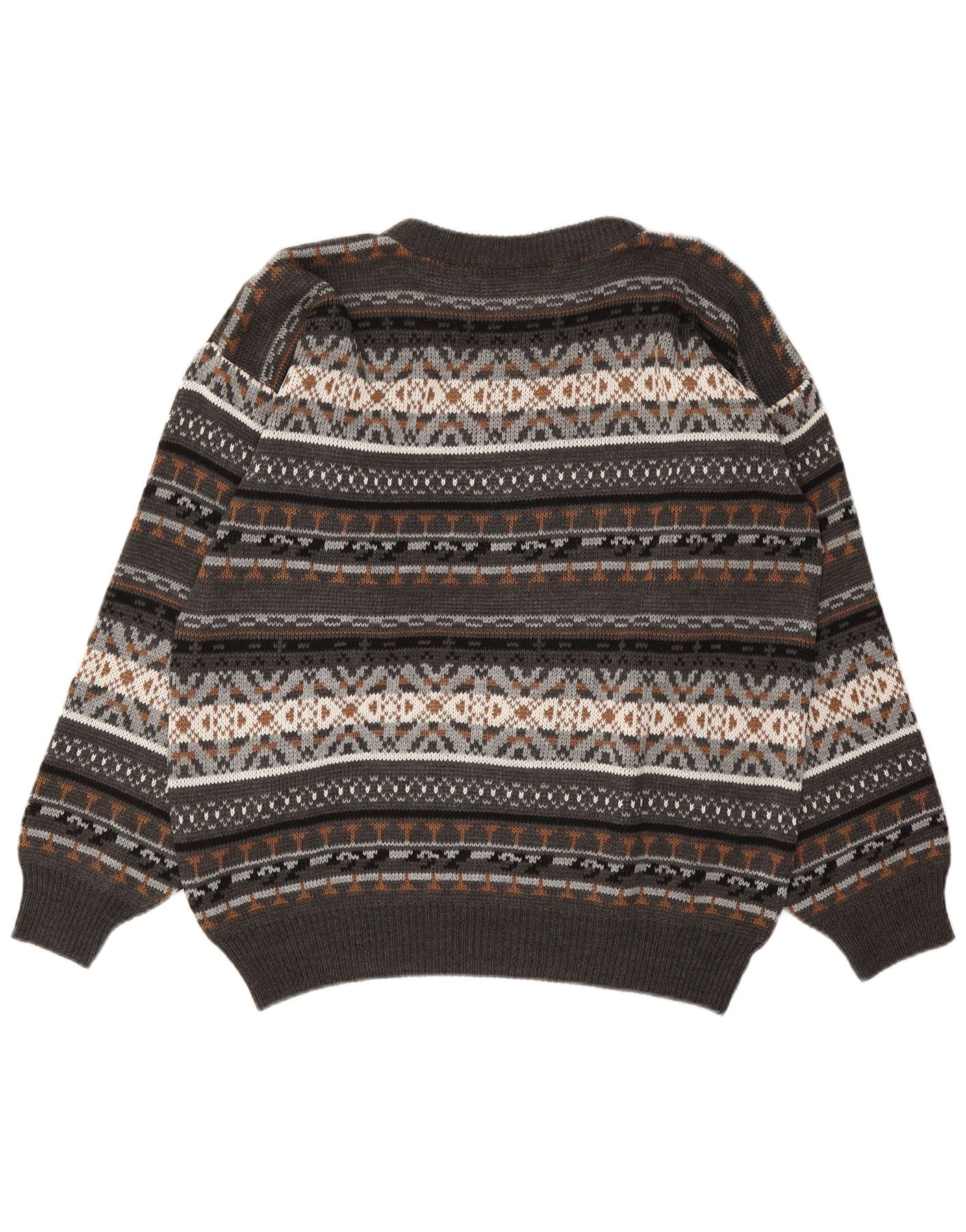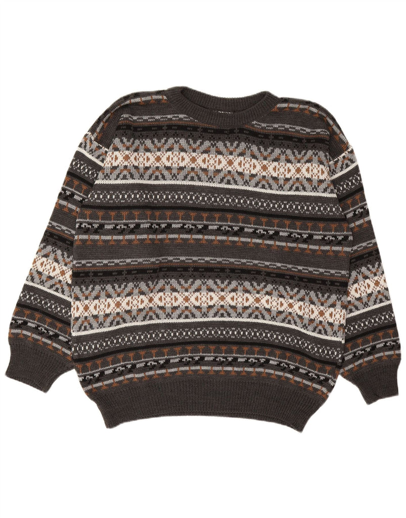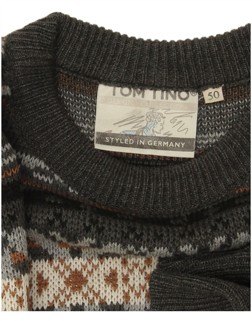 TOM TINO Mens Boat Neck Jumper Sweater EU 50 Medium Grey Fair Isle