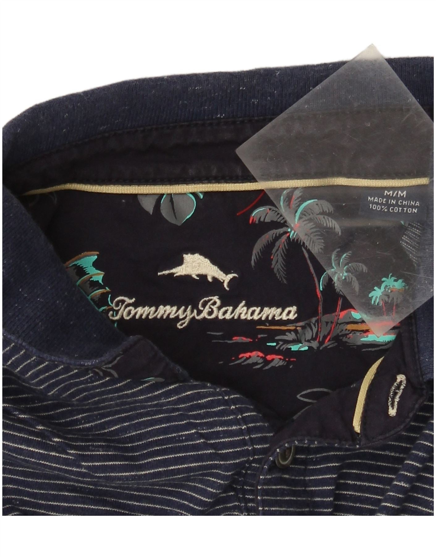 Tommy Bahama Mens Polo Shirt Medium Navy Blue Pinstripe Cotton