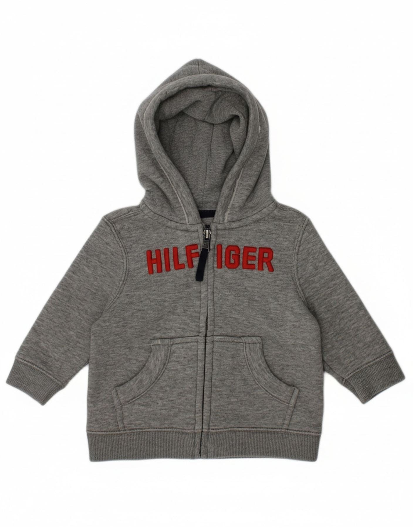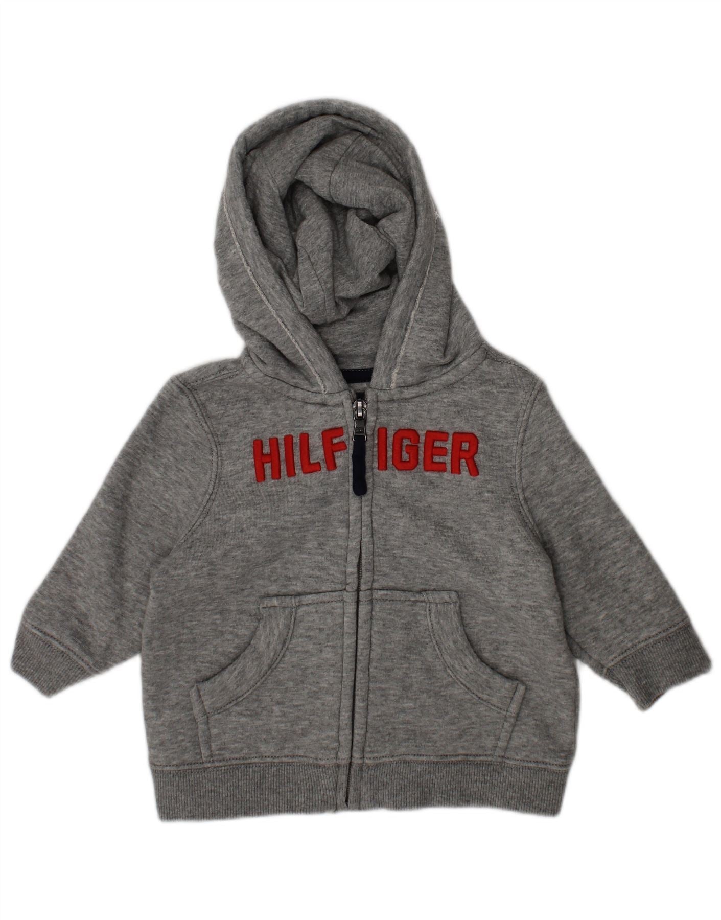 TOMMY HILFIGER Baby Boys Graphic Zip Neck Jumper Sweater 9-12 Months Grey