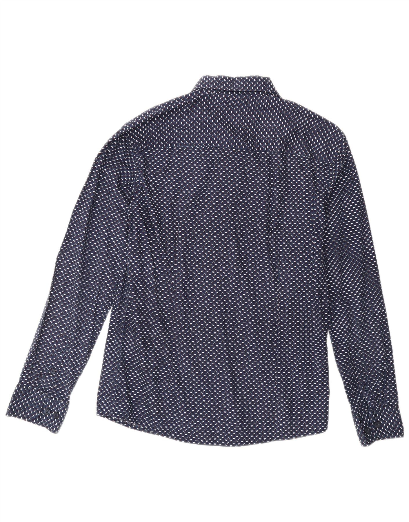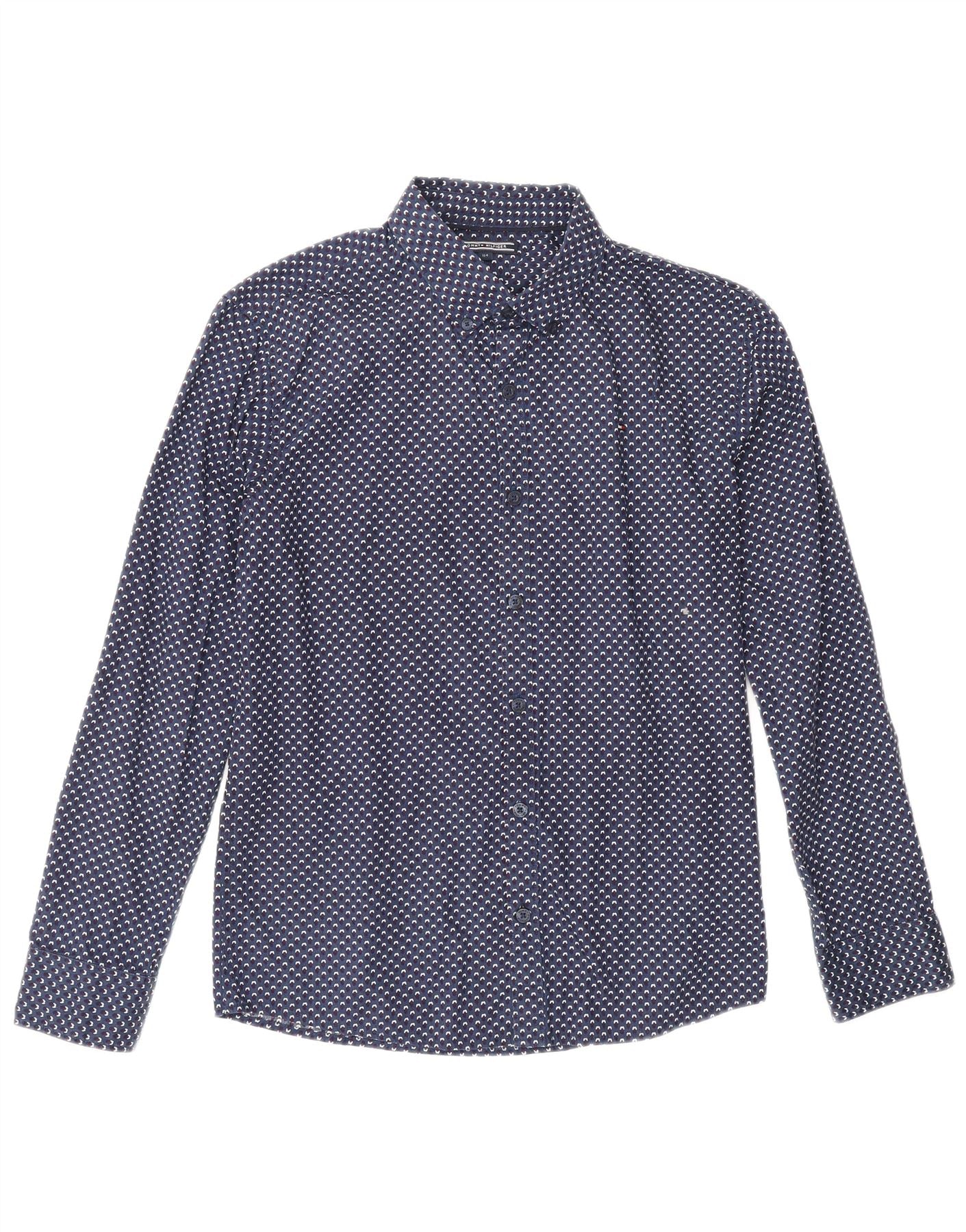 TOMMY HILFIGER Boys Abstract Pattern Shirt 13-14 Years Navy Blue Cotton