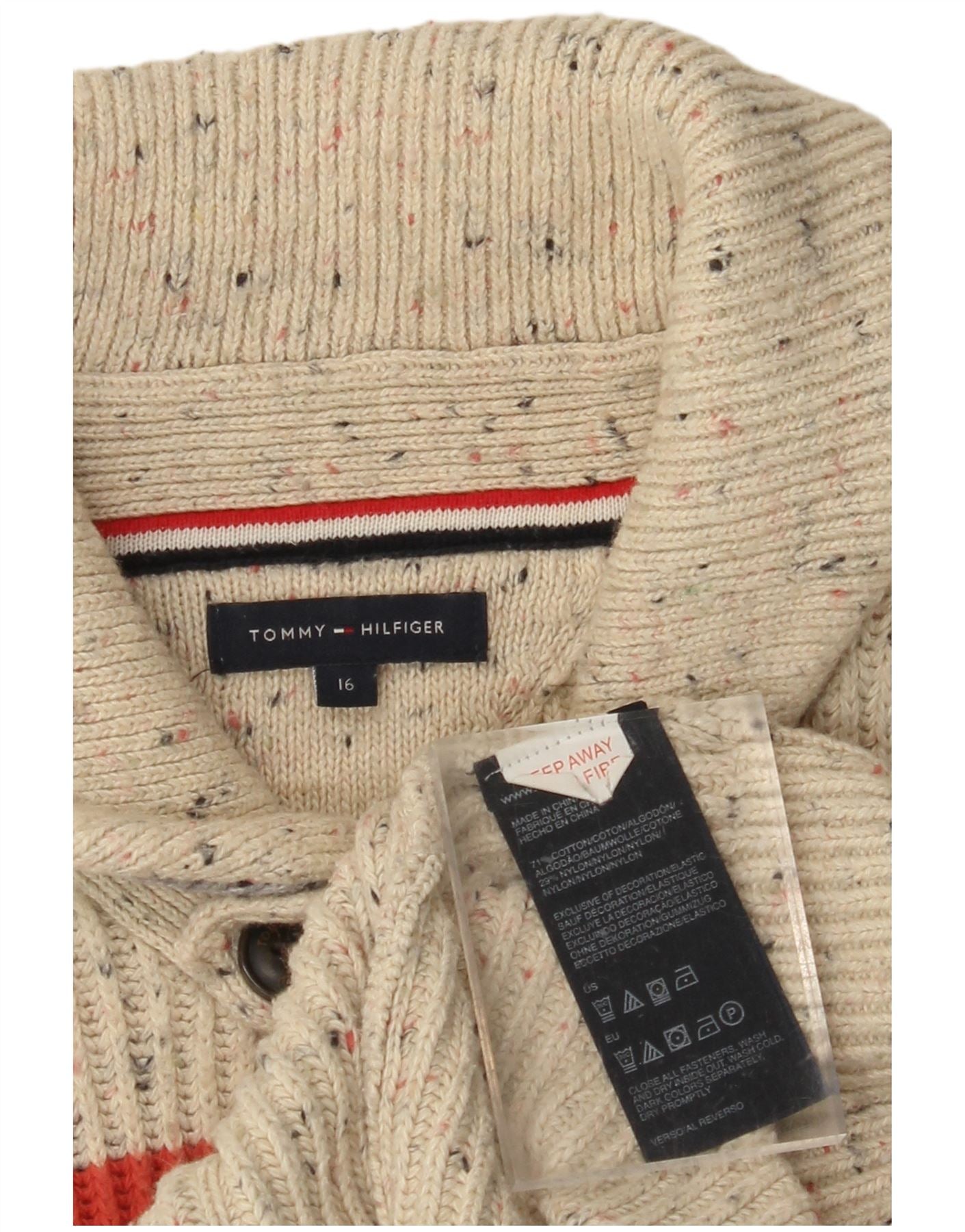 TOMMY HILFIGER Boys Cardigan Sweater 15-16 Years Beige Colourblock Cotton