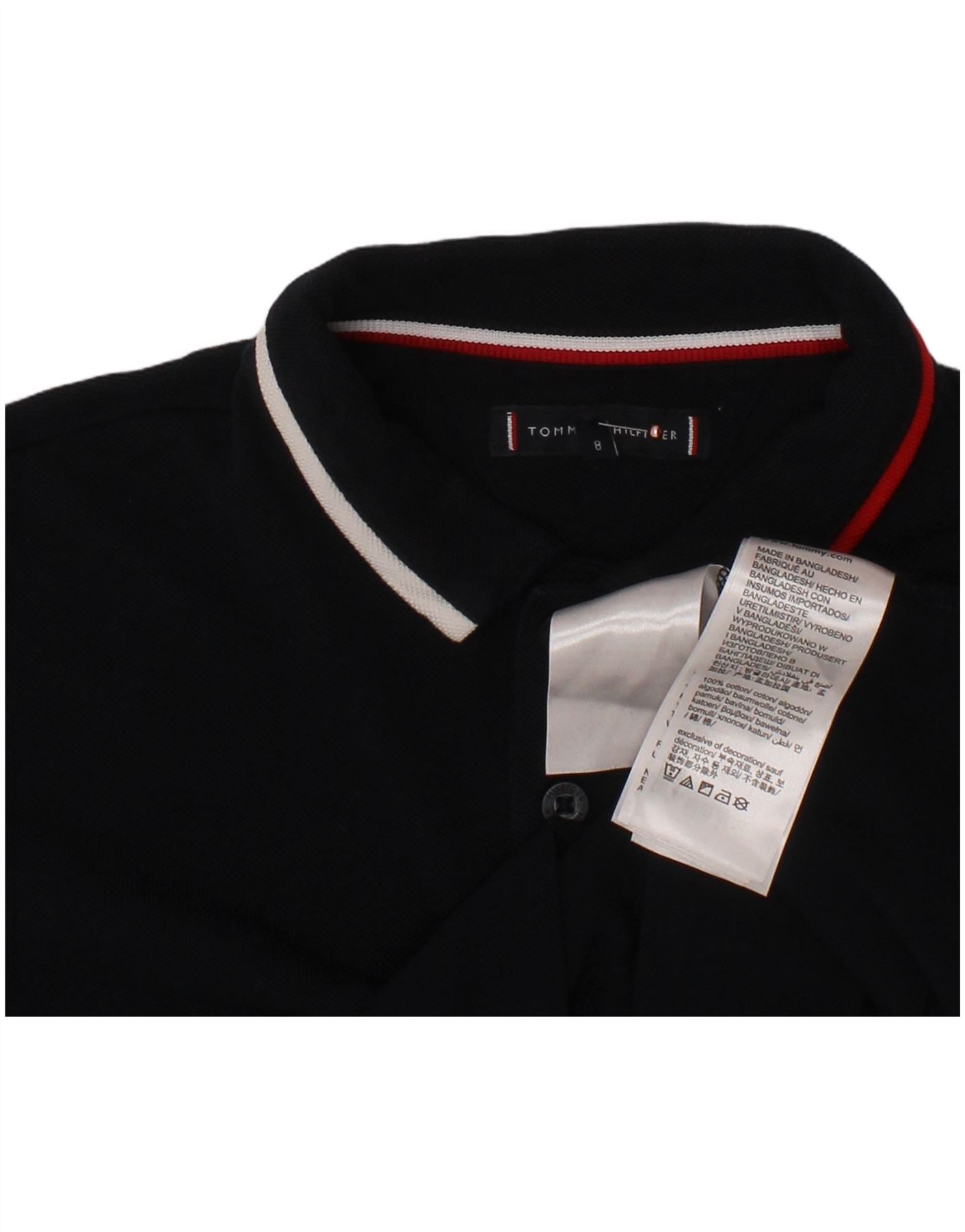 TOMMY HILFIGER Boys Polo Shirt 7-8 Years Navy Blue Cotton