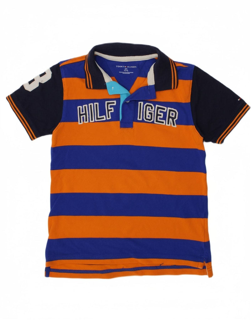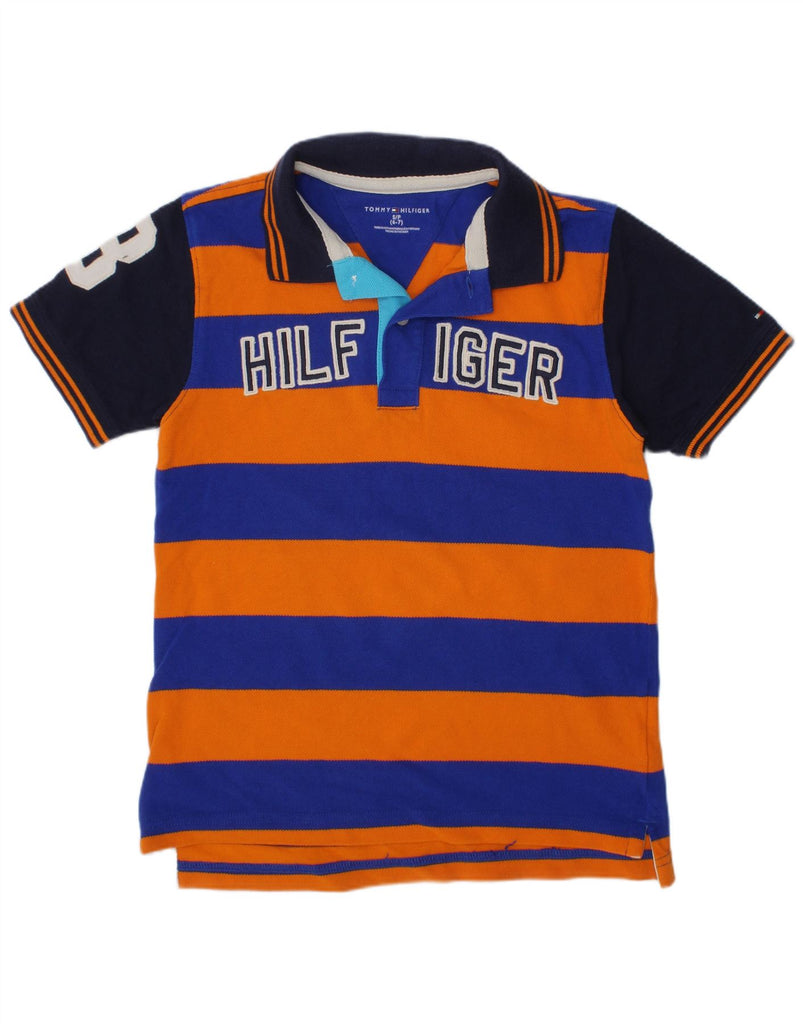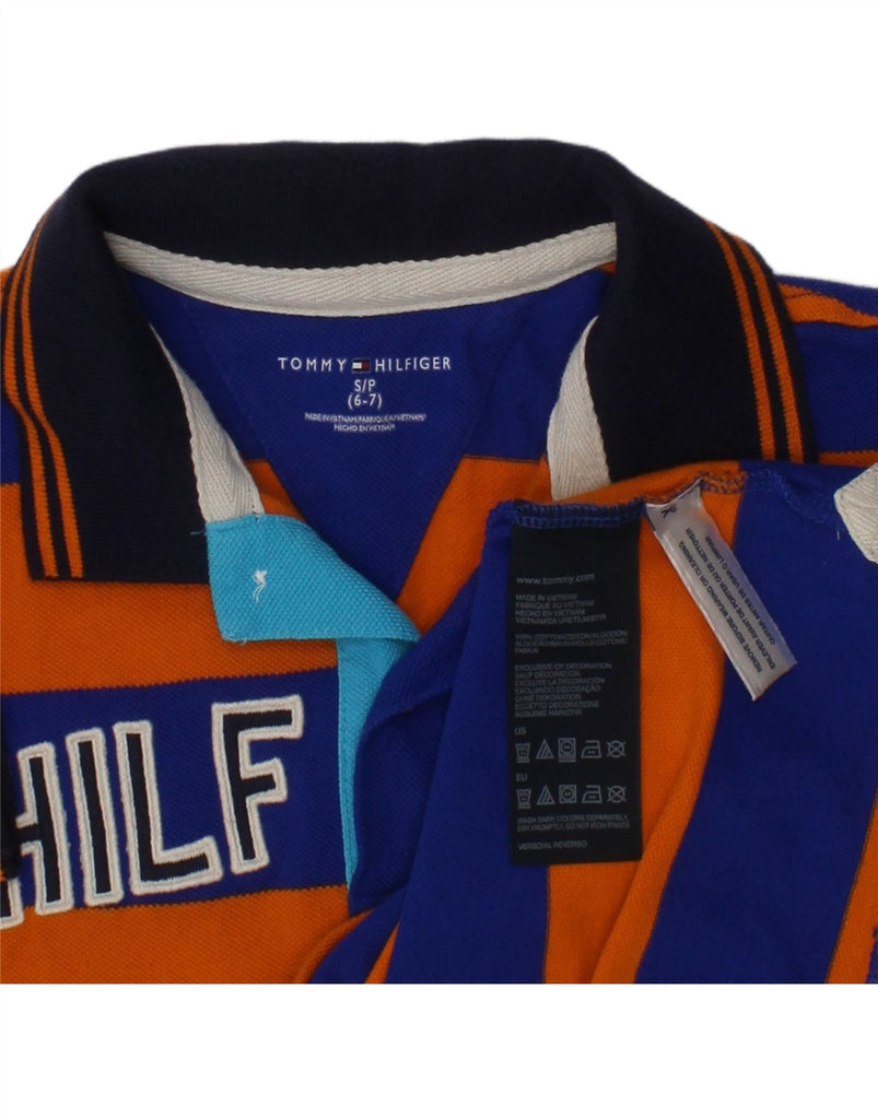 TOMMY HILFIGER Boys Rugby Polo Shirt 6-7 Years Small Multicoloured Striped