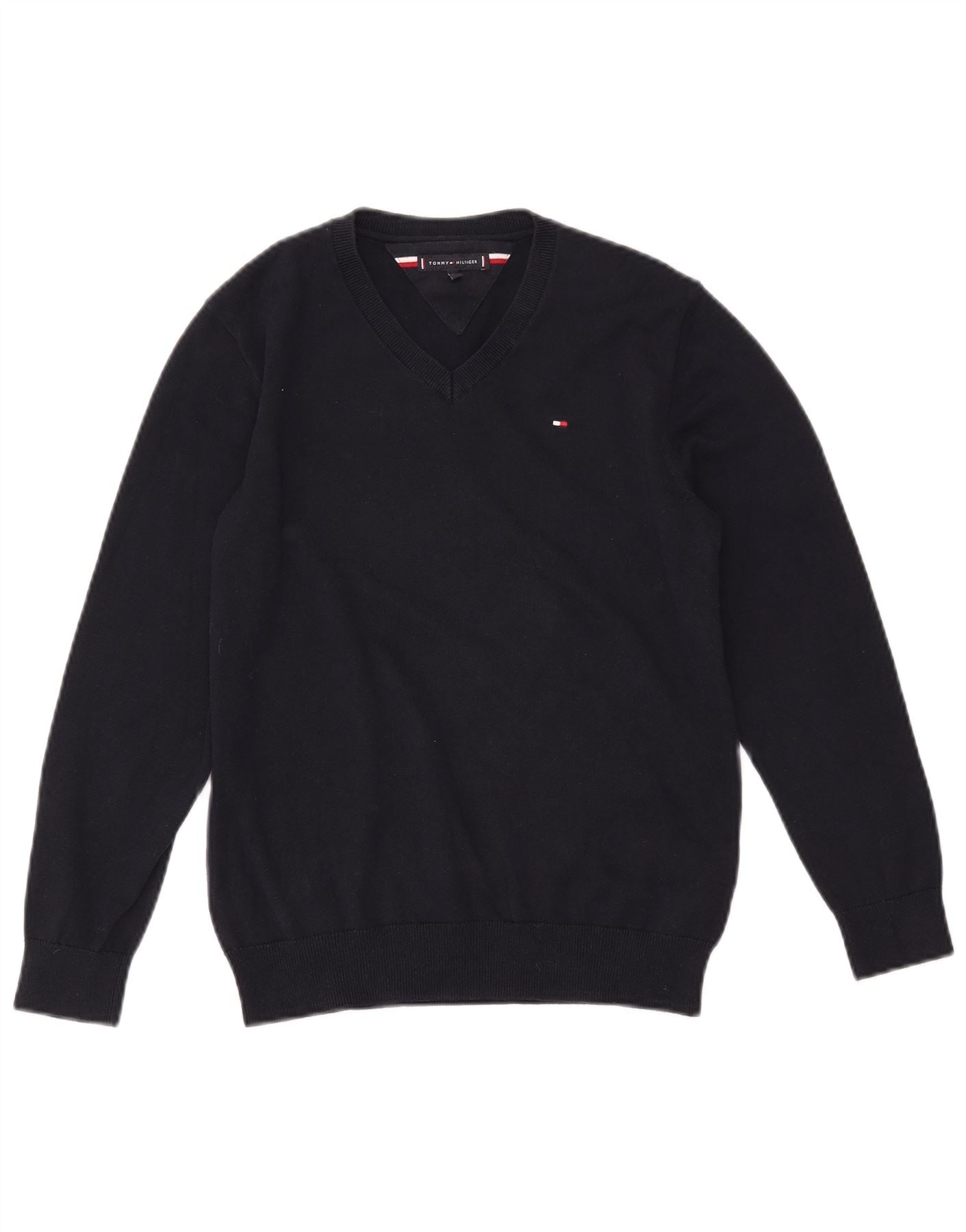 TOMMY HILFIGER Boys V-Neck Jumper Sweater 11-12 Years Navy Blue Cotton