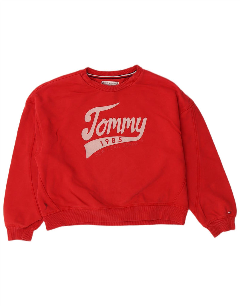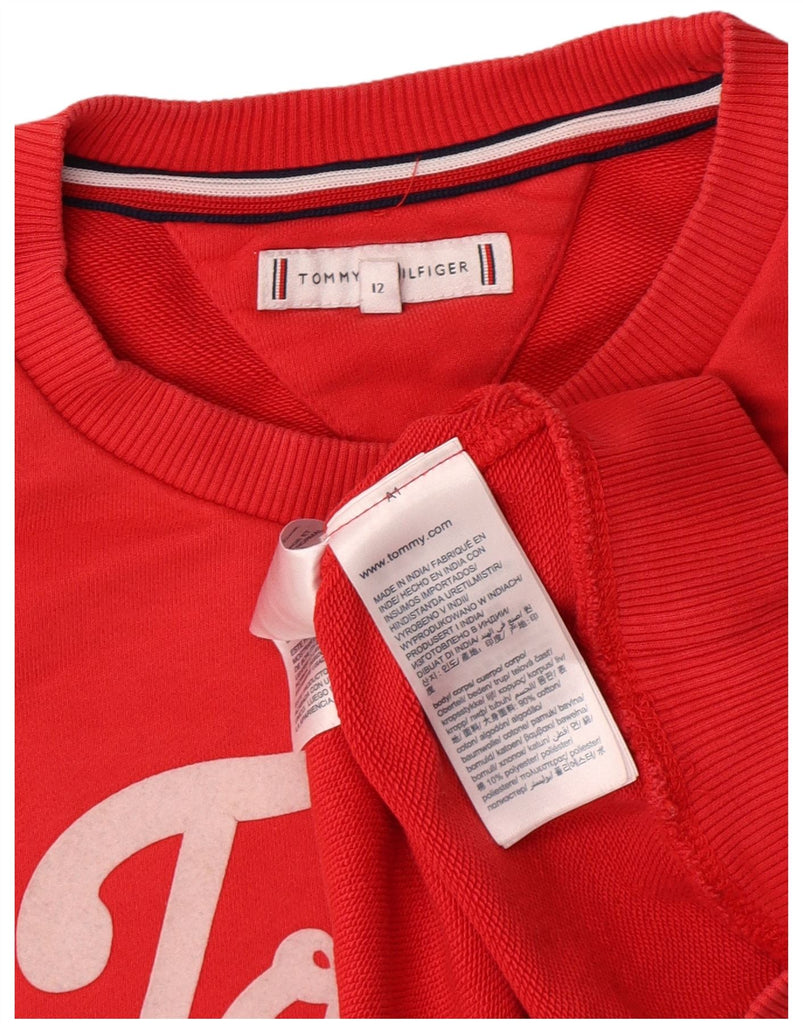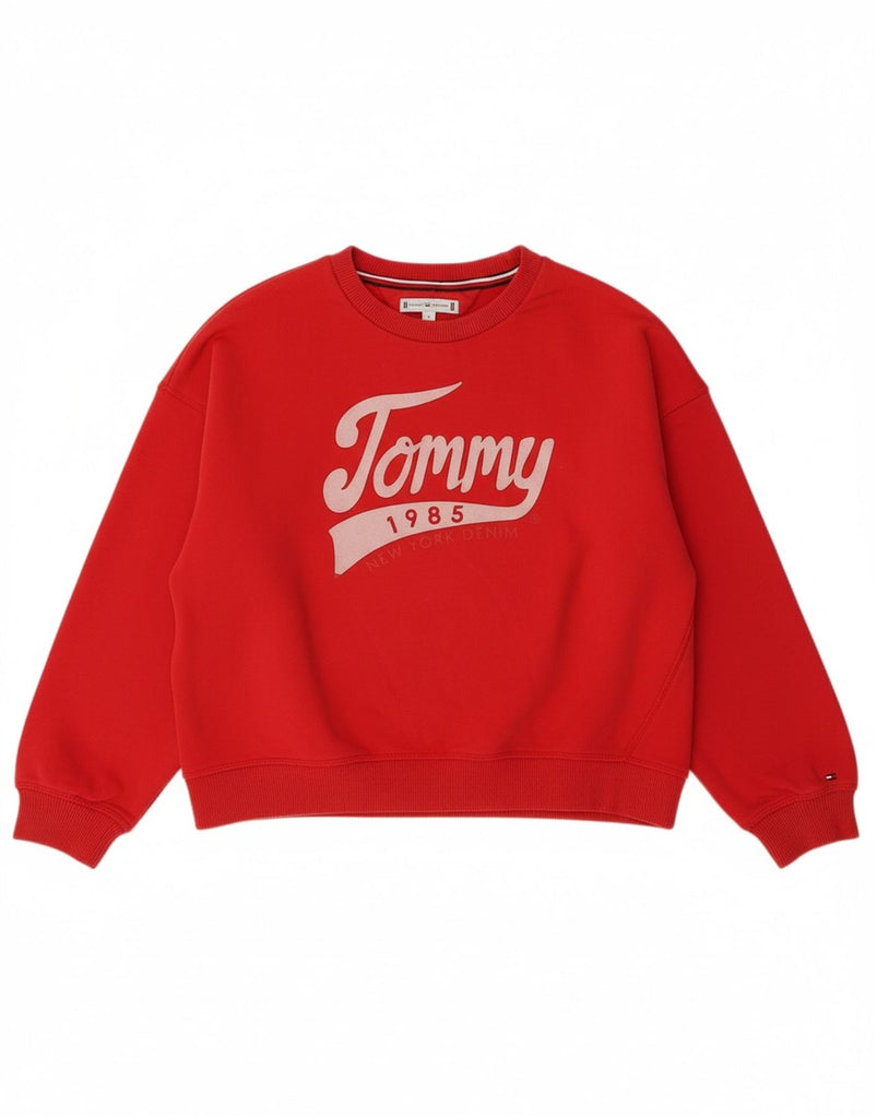 TOMMY HILFIGER Girls Oversized Graphic Sweatshirt Jumper 11-12 Years Red