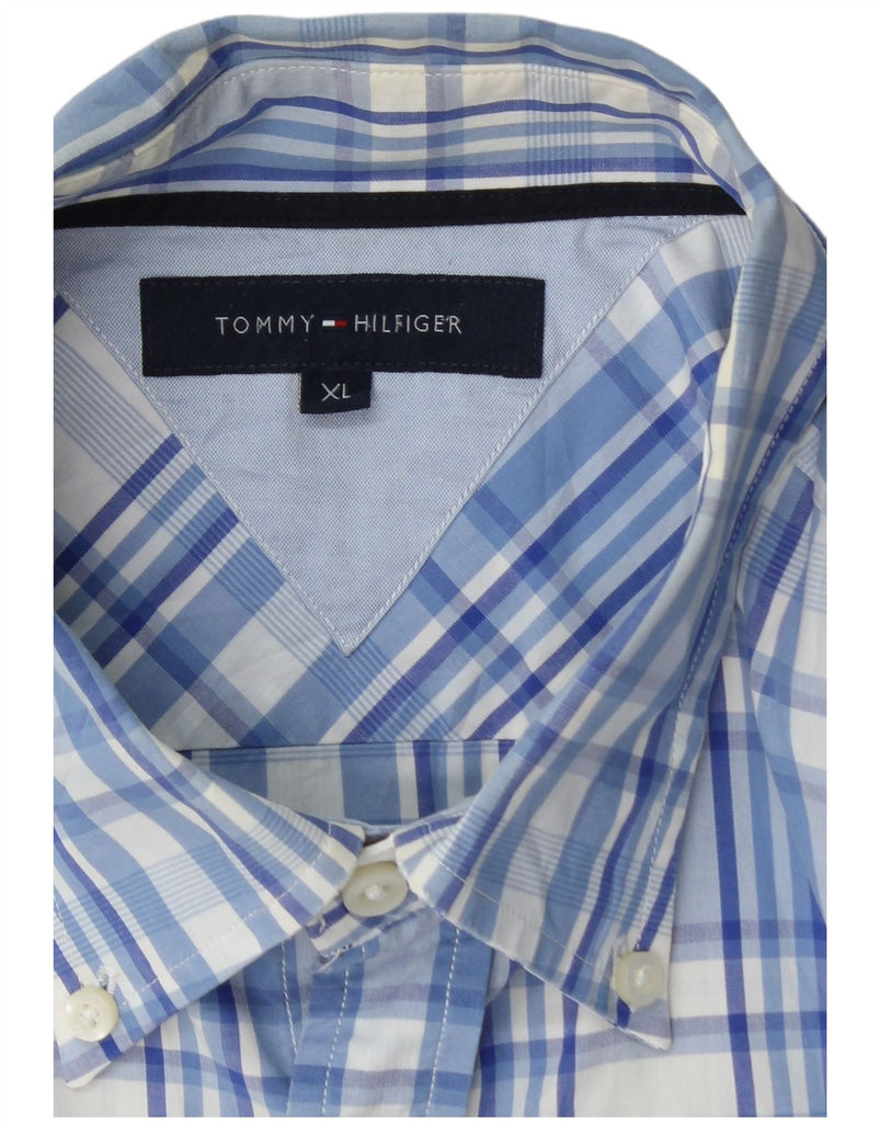 TOMMY HILFIGER Mens Checked Shirt XL Blue Check Cotton