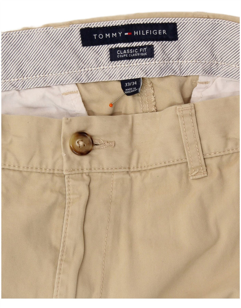 TOMMY HILFIGER Mens Classic Fit Straight Chino Trousers W33 L34 Beige