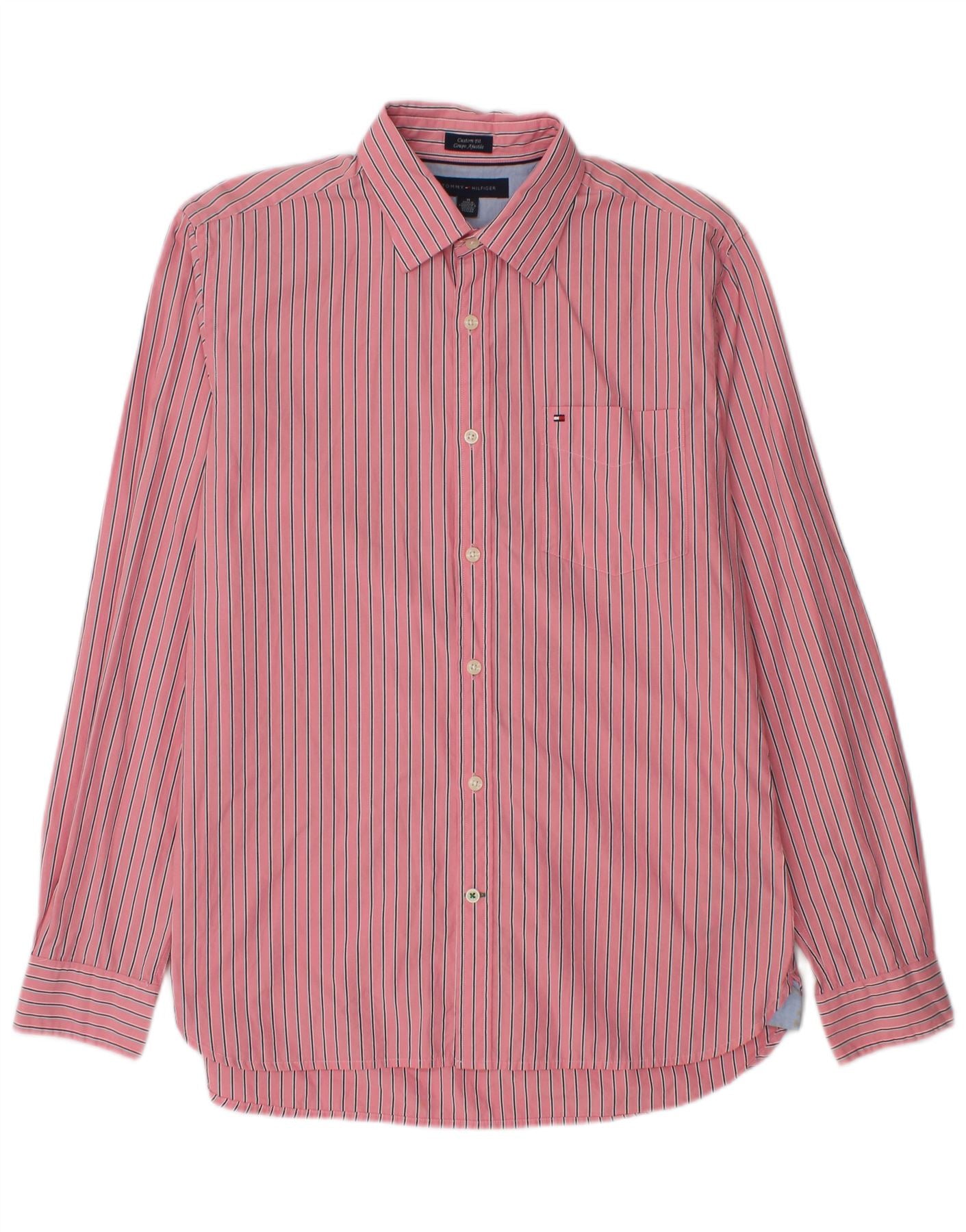 TOMMY HILFIGER Mens Coupe Ajustee Custom Fit Shirt Medium Pink Striped