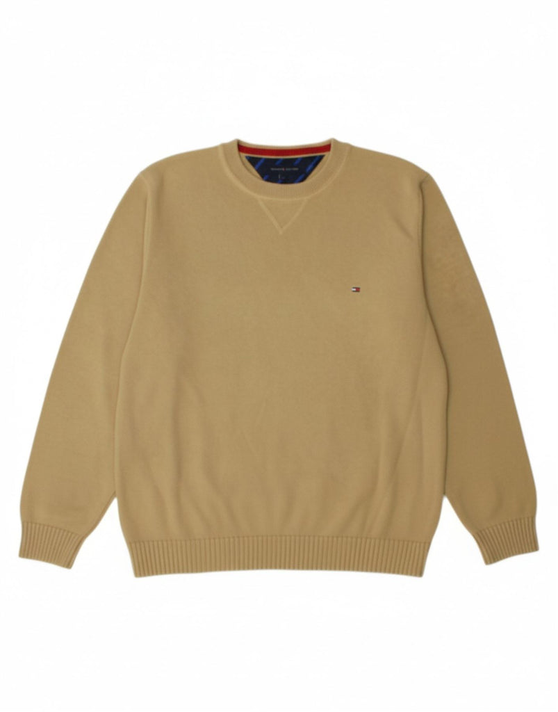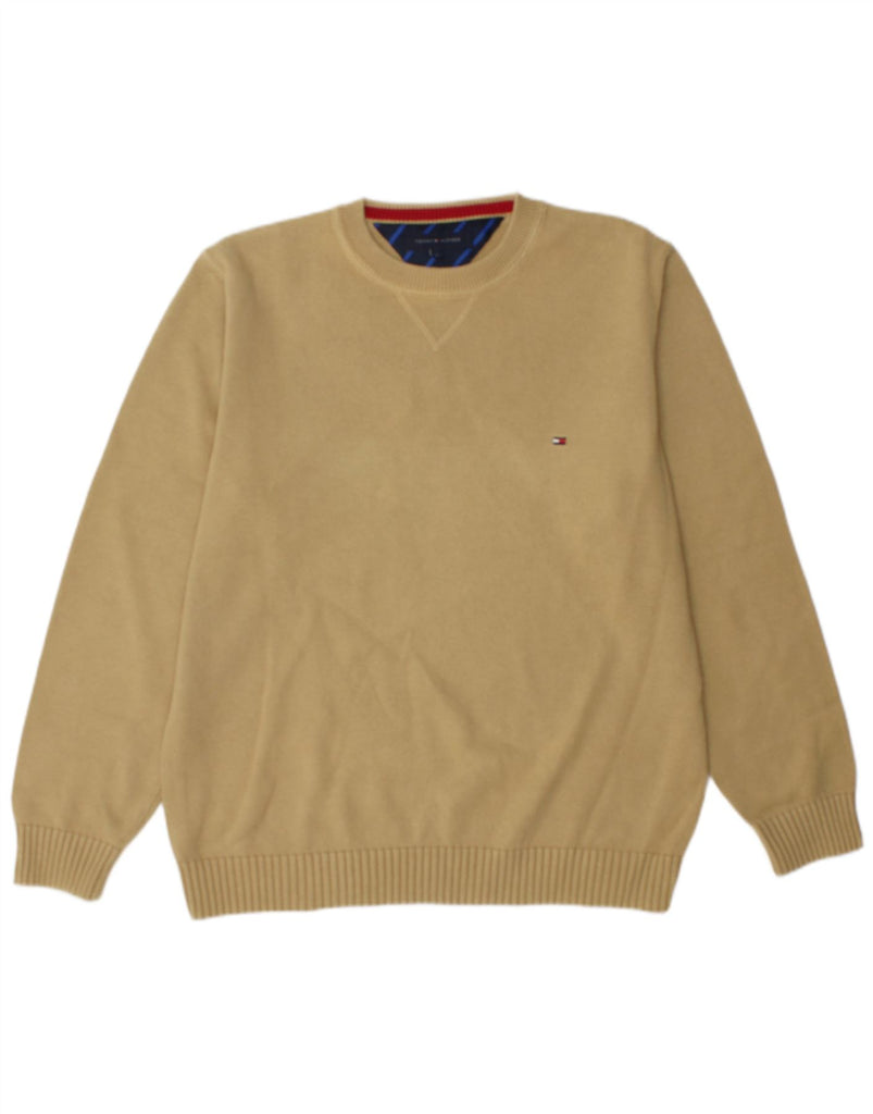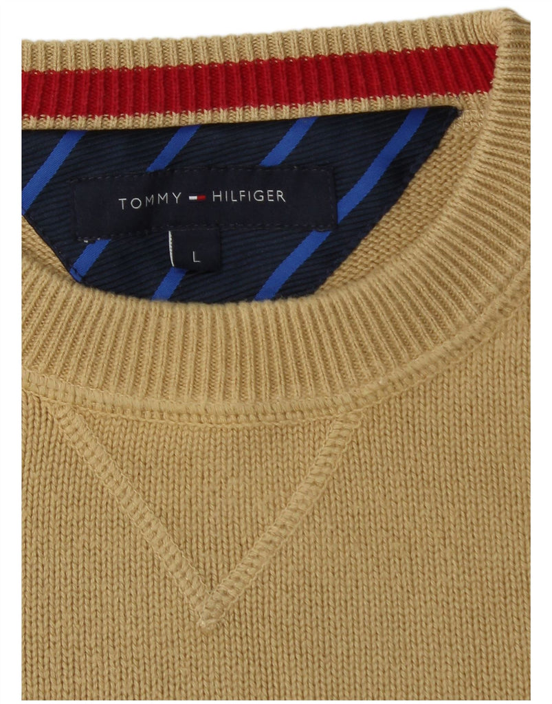 TOMMY HILFIGER Mens Crew Neck Jumper Sweater Large Beige Cotton