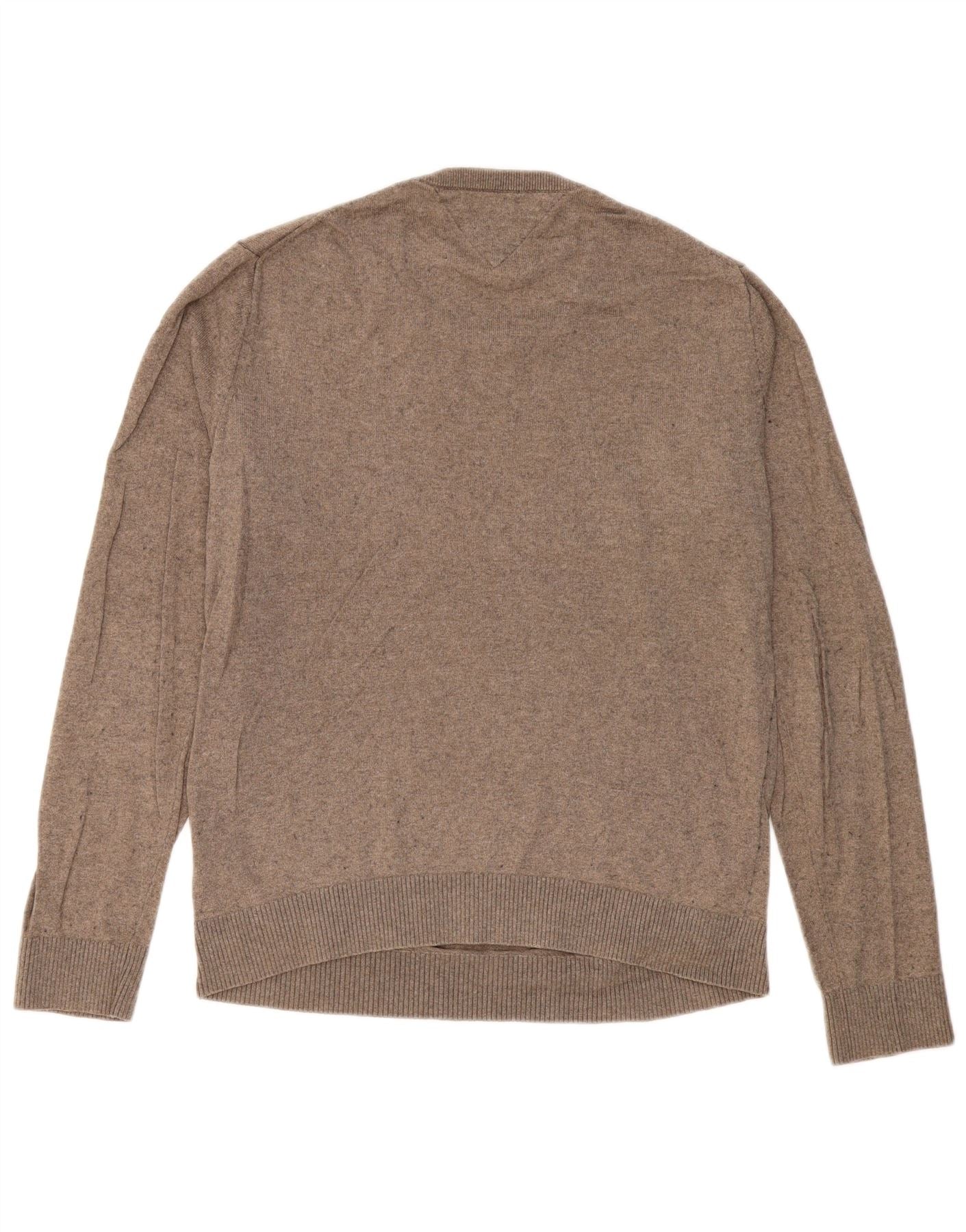 TOMMY HILFIGER Mens Crew Neck Jumper Sweater Large Brown Cotton