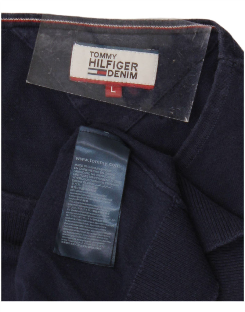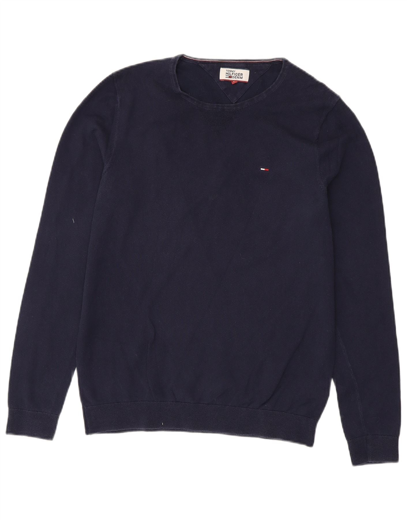 TOMMY HILFIGER Mens Crew Neck Jumper Sweater Large Navy Blue Cotton
