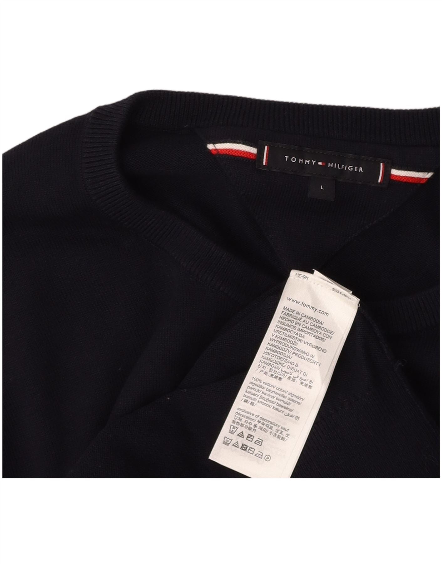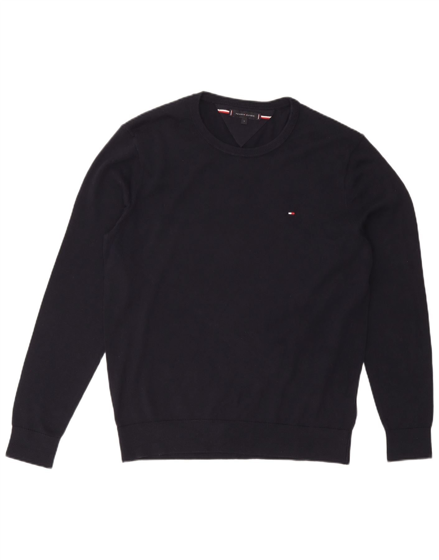 TOMMY HILFIGER Mens Crew Neck Jumper Sweater Large Navy Blue Cotton