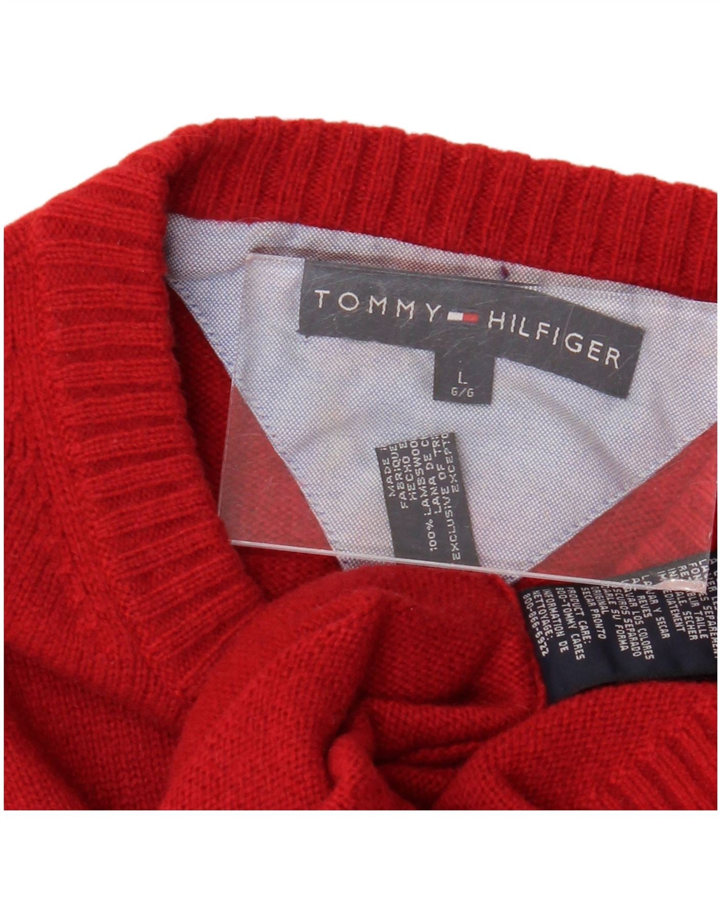 TOMMY HILFIGER Mens Crew Neck Jumper Sweater Large Red Wool