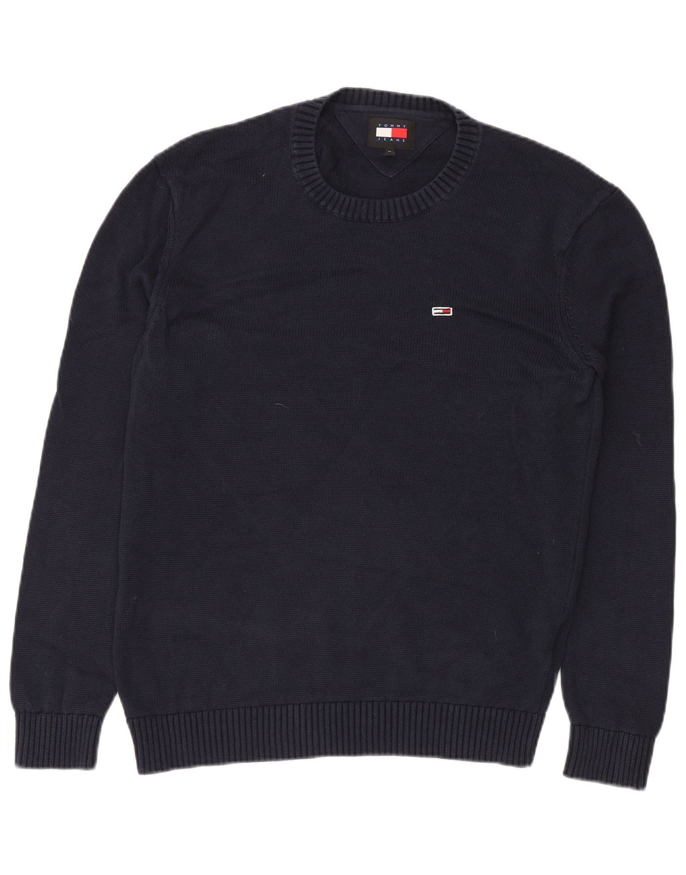 TOMMY HILFIGER Mens Crew Neck Jumper Sweater Medium Navy Blue Cotton