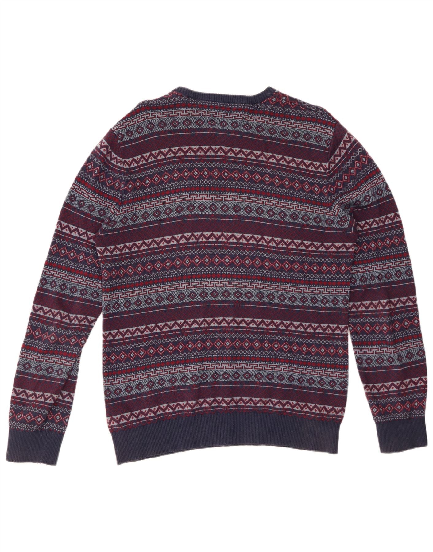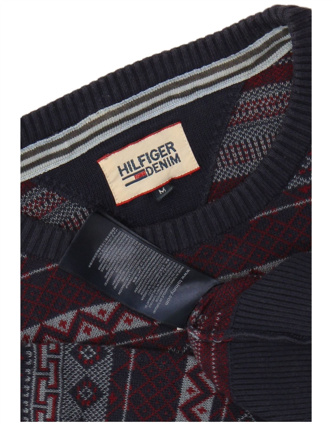TOMMY HILFIGER Mens Crew Neck Jumper Sweater Medium Navy Blue Fair Isle