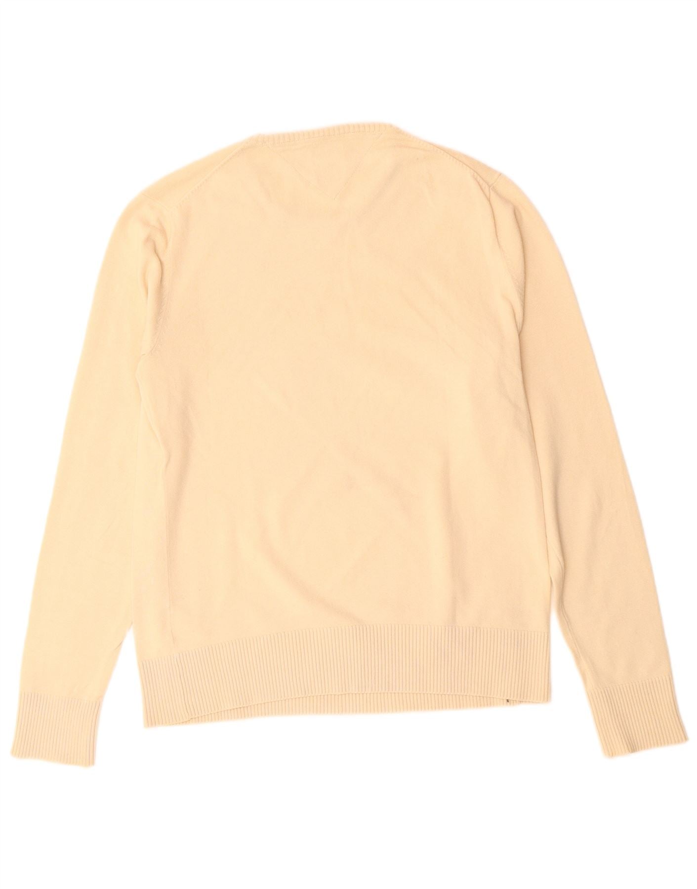 TOMMY HILFIGER Mens Crew Neck Jumper Sweater Small Beige Cotton