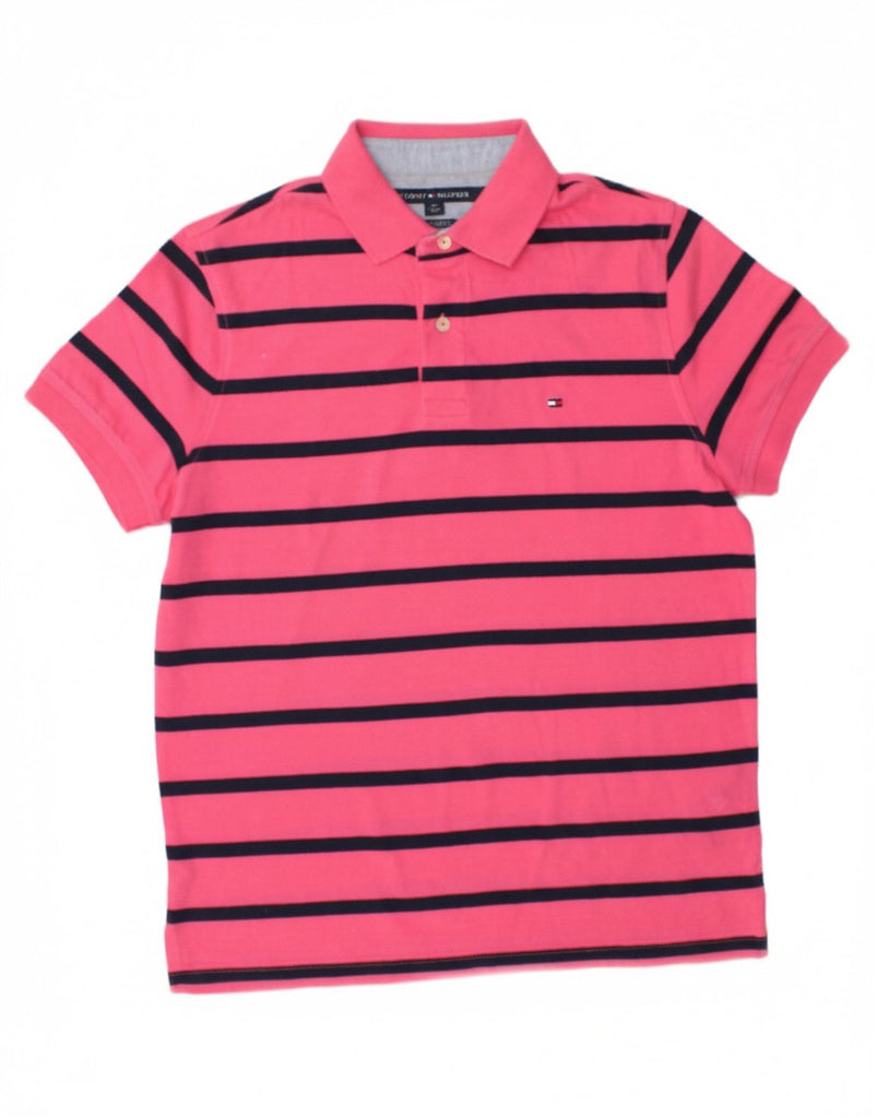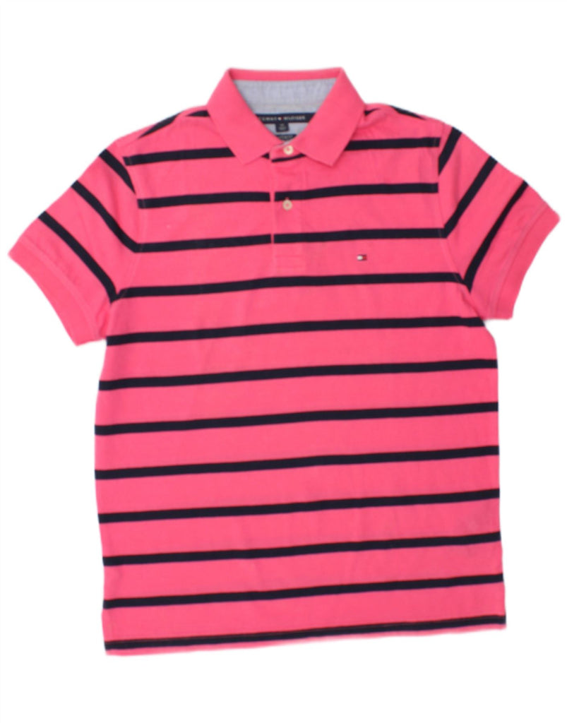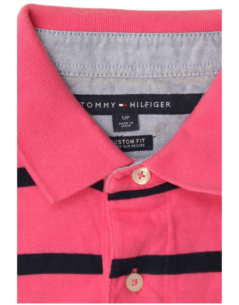 TOMMY HILFIGER Mens Custom Fit Polo Shirt Small Pink Striped Cotton