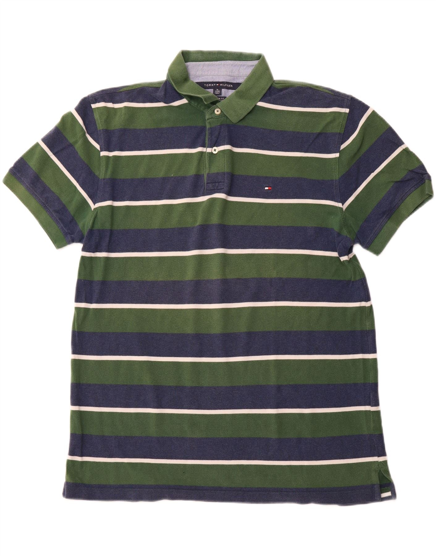TOMMY HILFIGER Mens Custom Fit Polo Shirt XL Green Striped Cotton