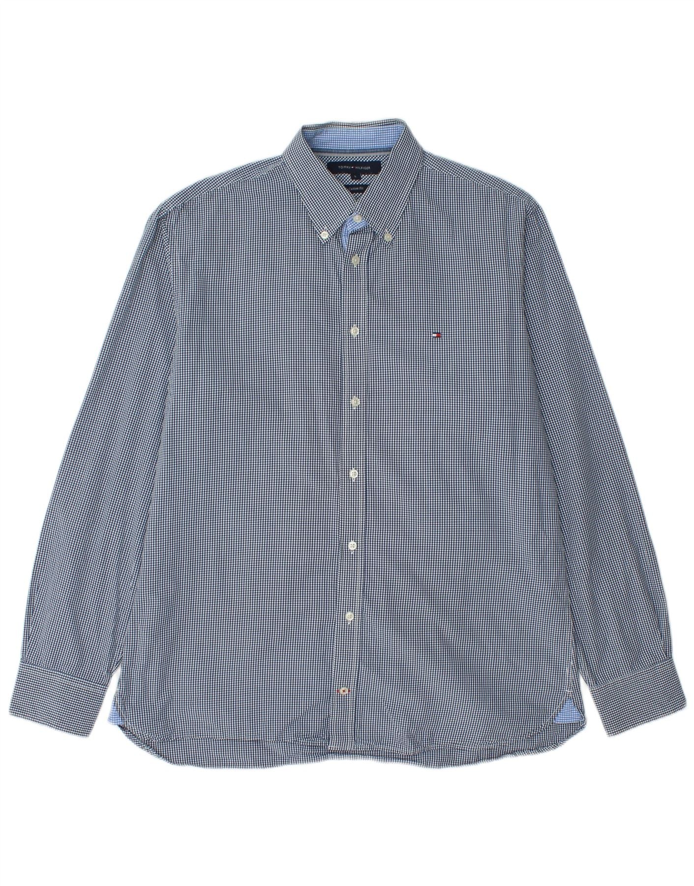 Tommy Hilfiger Mens Custom Fit Shirt Large Navy Blue Gingham