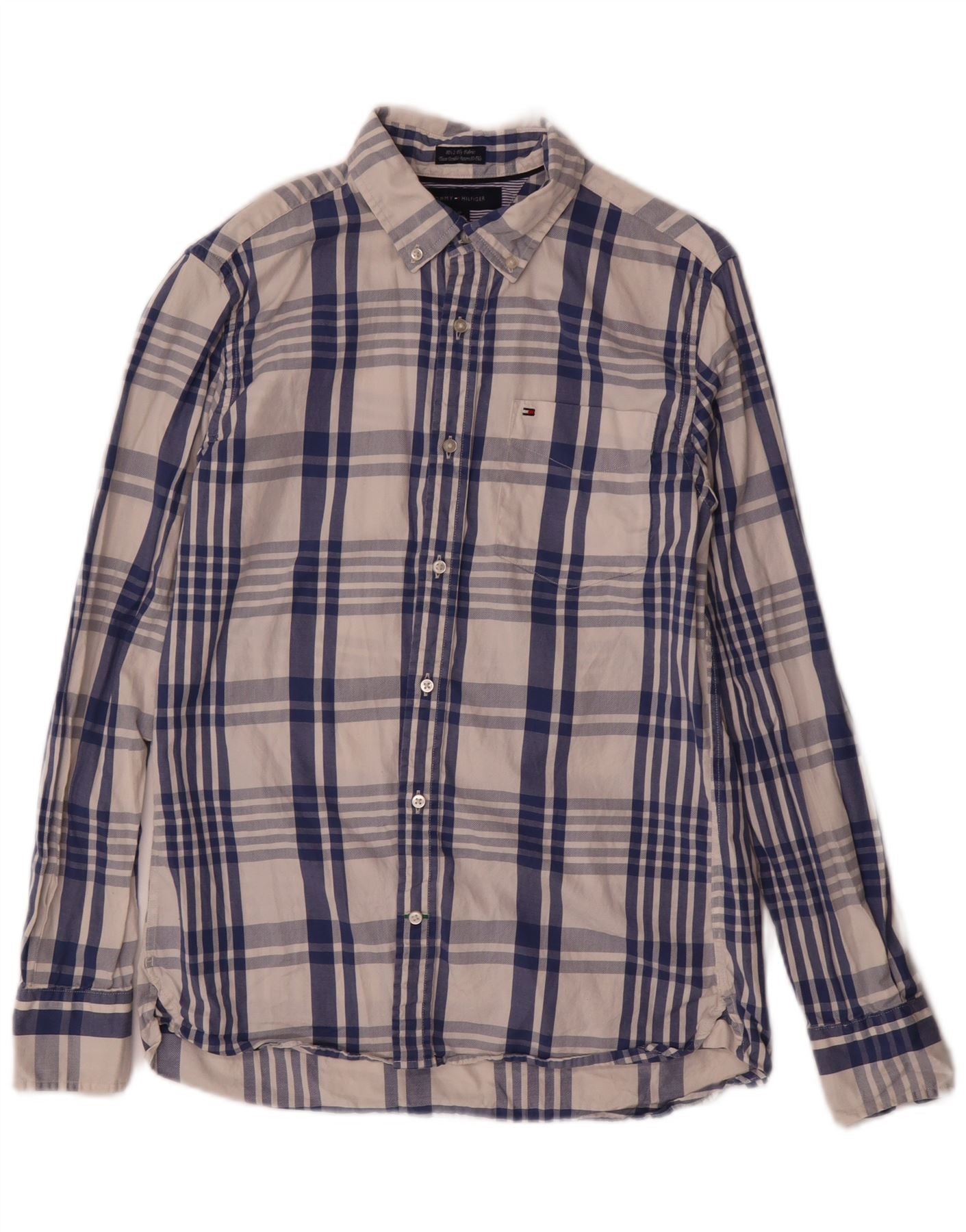 TOMMY HILFIGER Mens Custom Fit Shirt Size 14 1/2 Small Blue Check Cotton