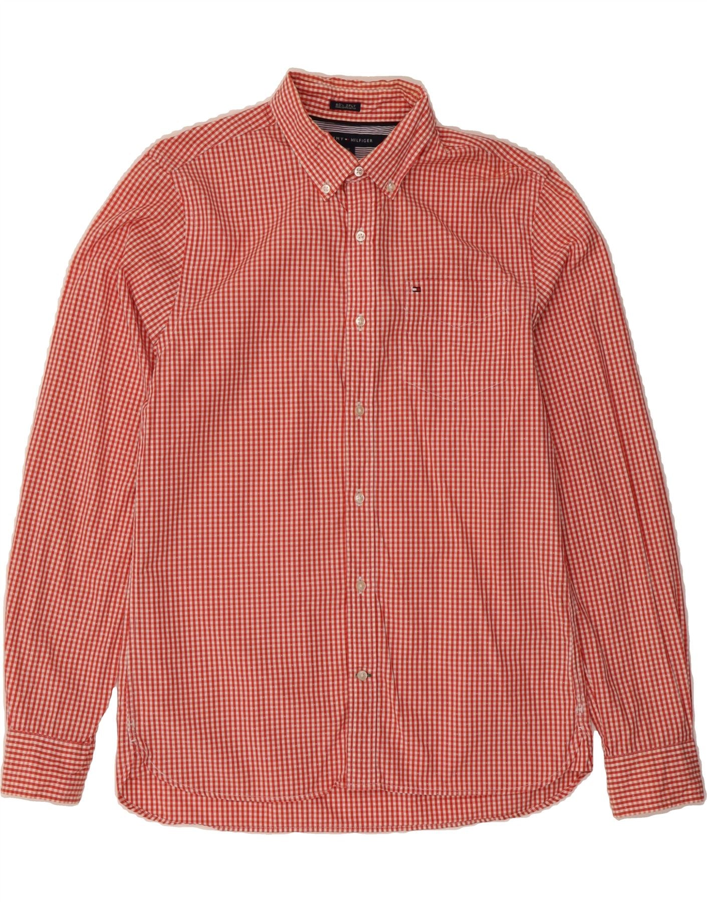 TOMMY HILFIGER Mens Custom Fit Shirt Small Red Gingham Cotton 80s