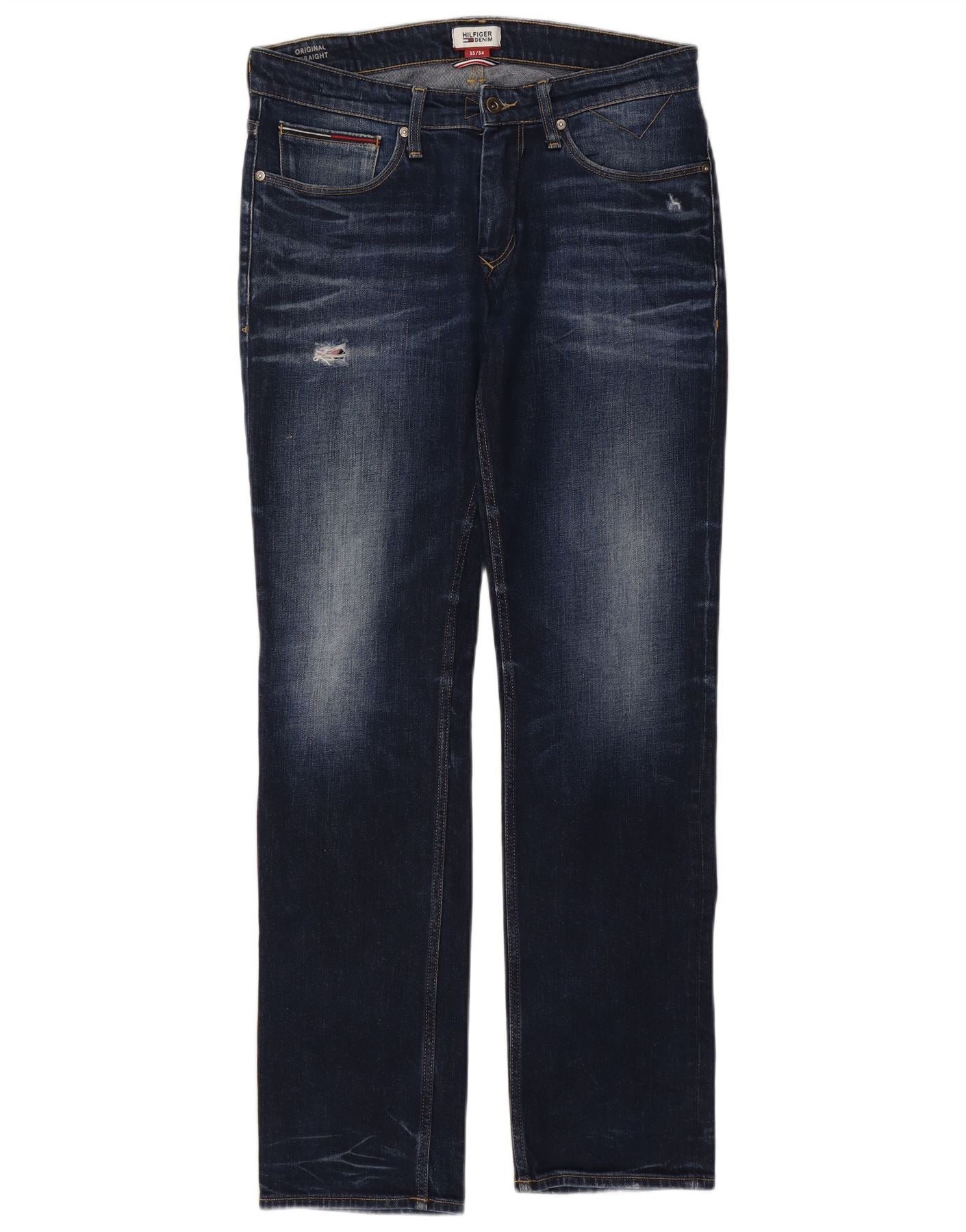 TOMMY HILFIGER Mens Distressed Original Fit Straight Jeans W33 L34 Blue