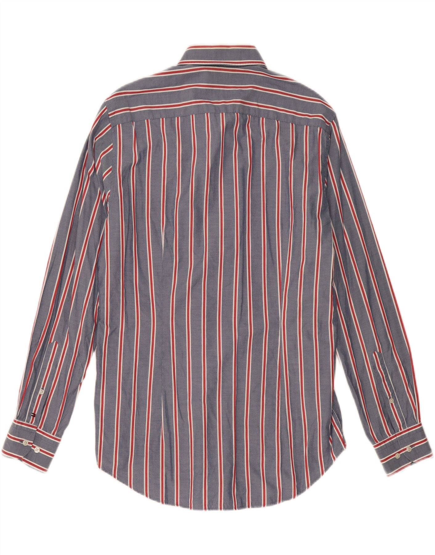 TOMMY HILFIGER Mens Fitted Shirt Size 15 3/4 Medium Navy Blue Striped