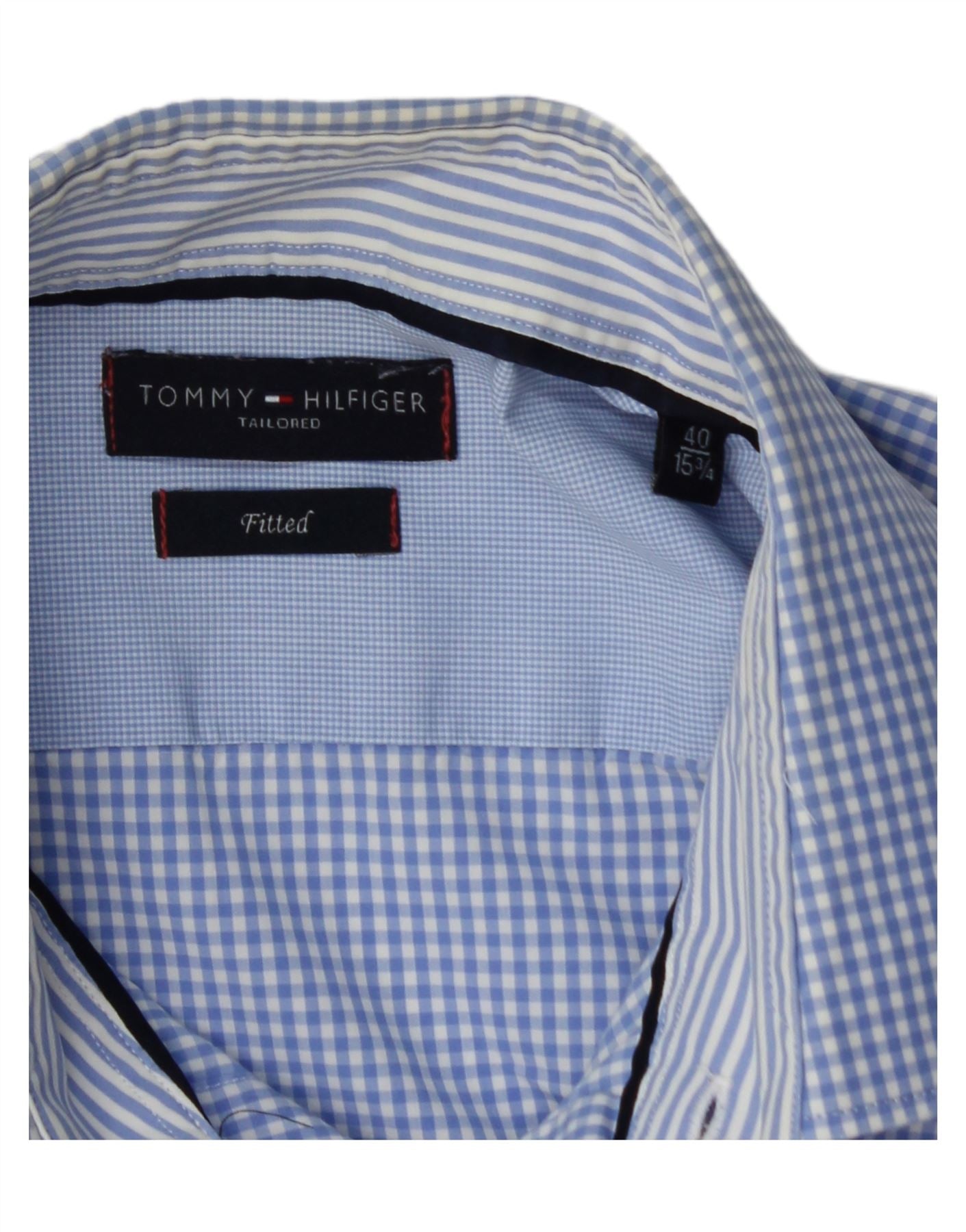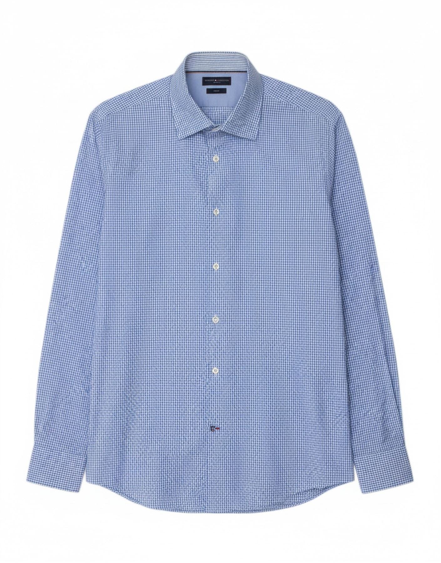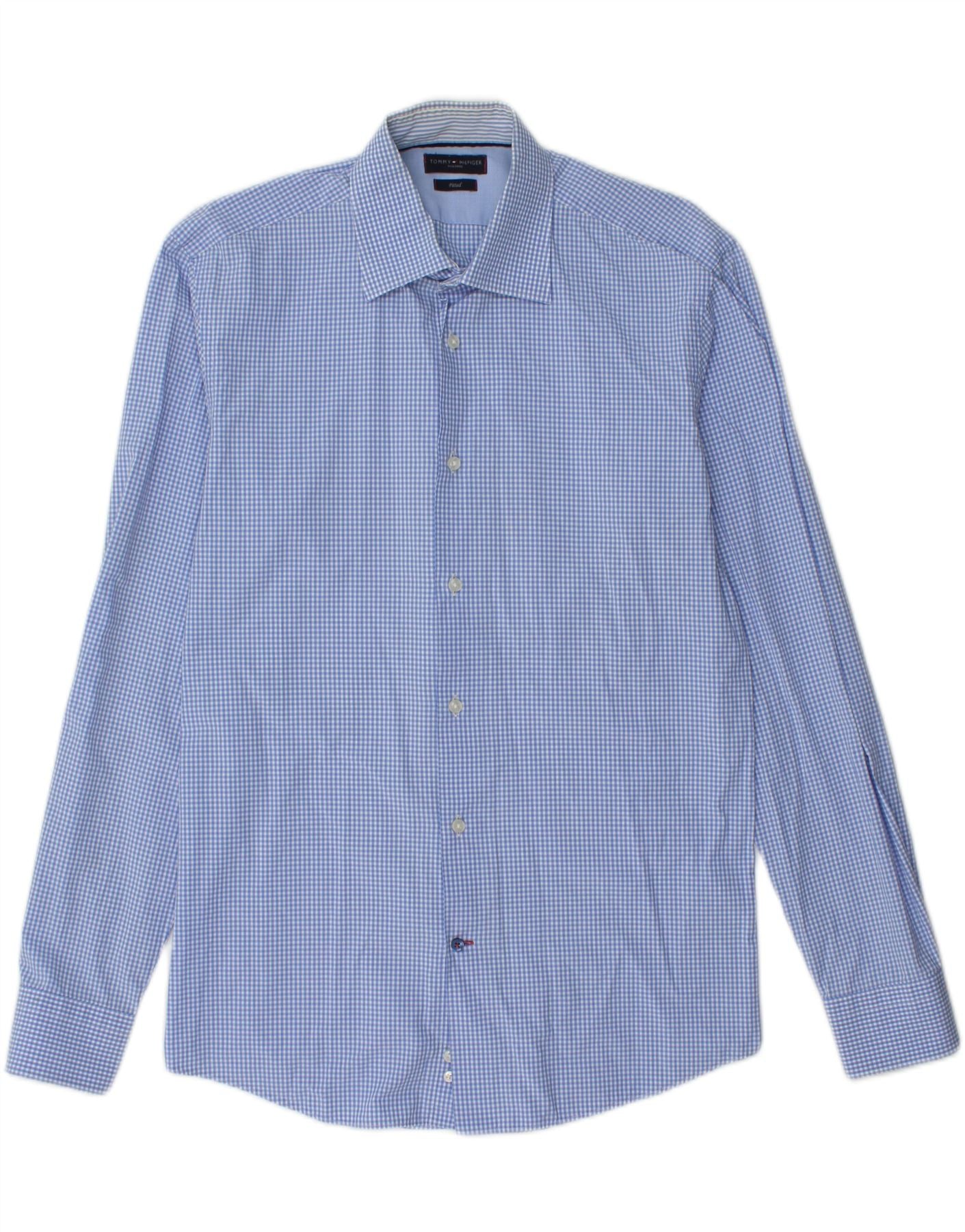 TOMMY HILFIGER Mens Fitted Shirt Size 40 15 1/2 Medium Blue Gingham