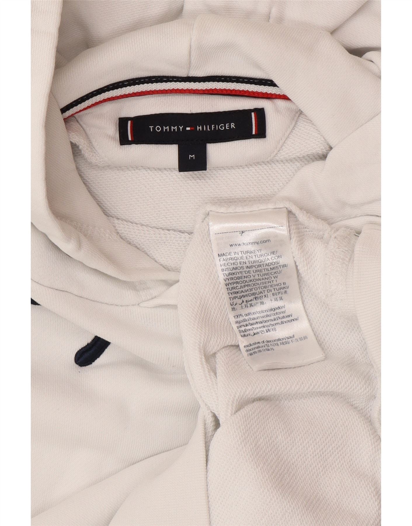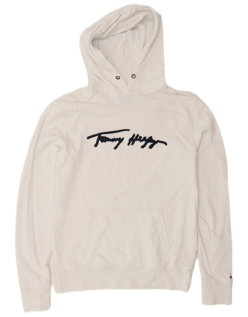 TOMMY HILFIGER Mens Graphic Hoodie Jumper Medium White Cotton