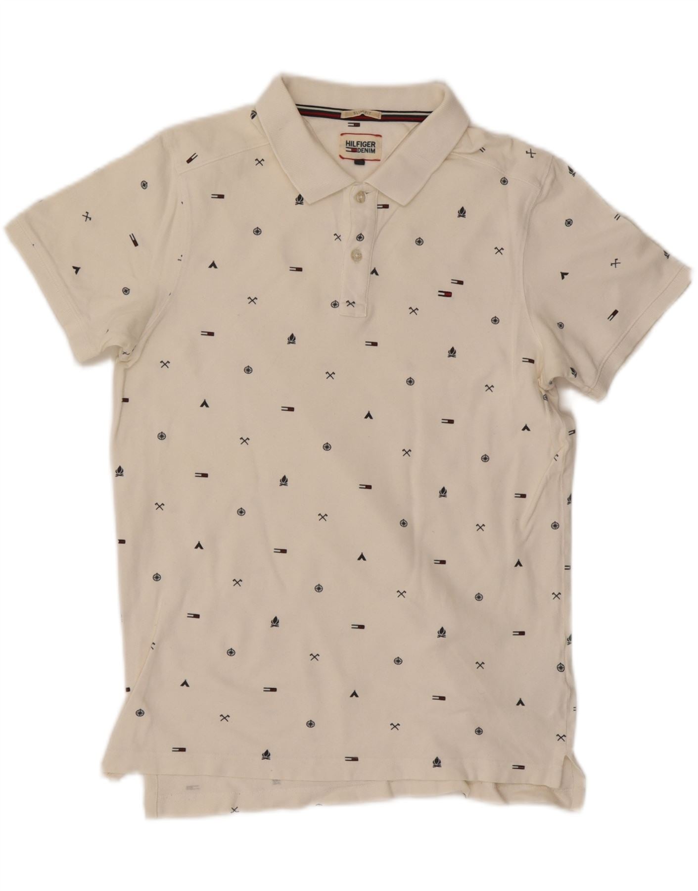 TOMMY HILFIGER Mens Graphic Slim Fit Polo Shirt Medium Off White Cotton