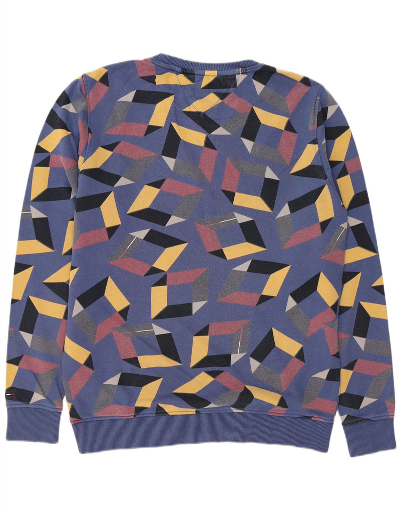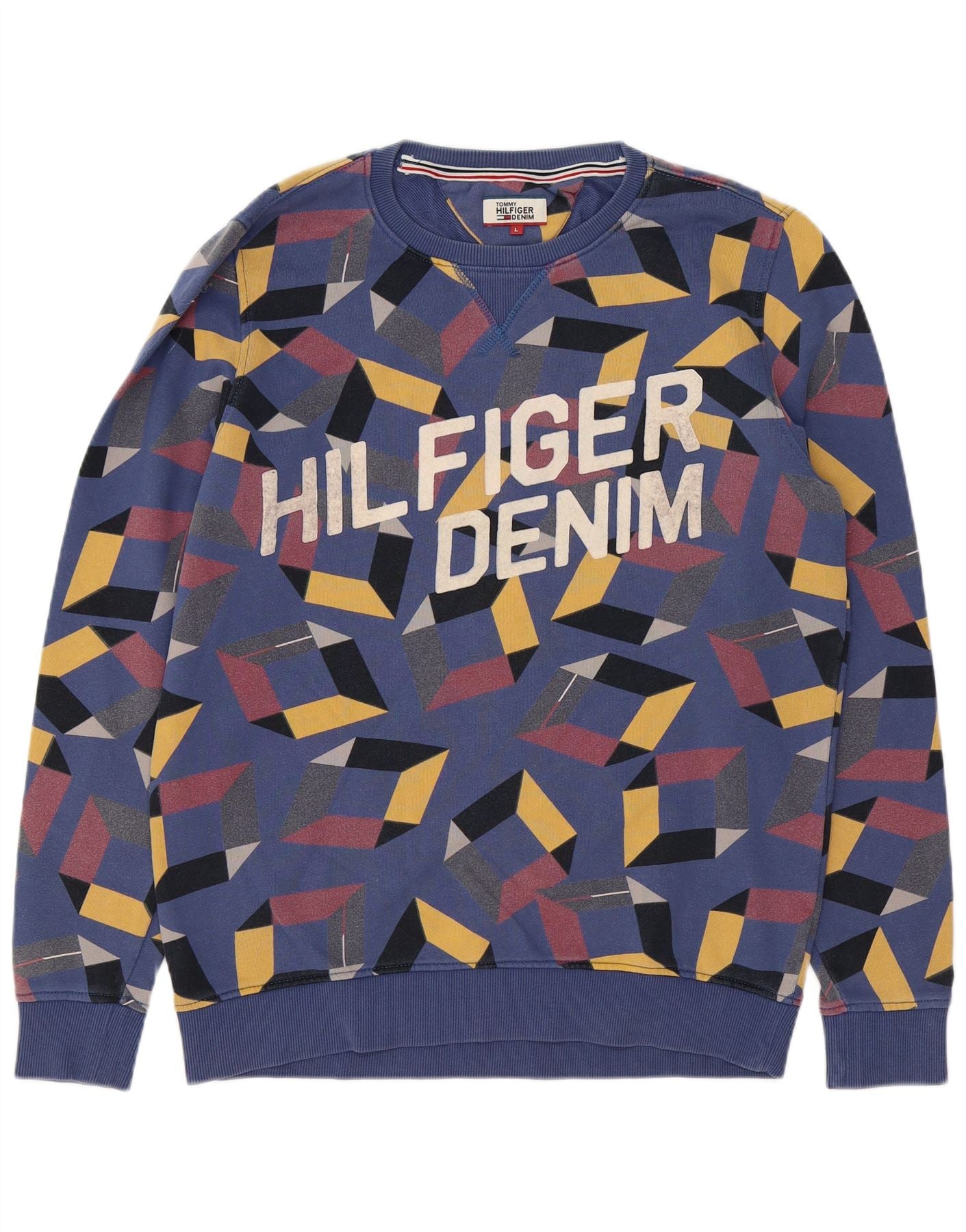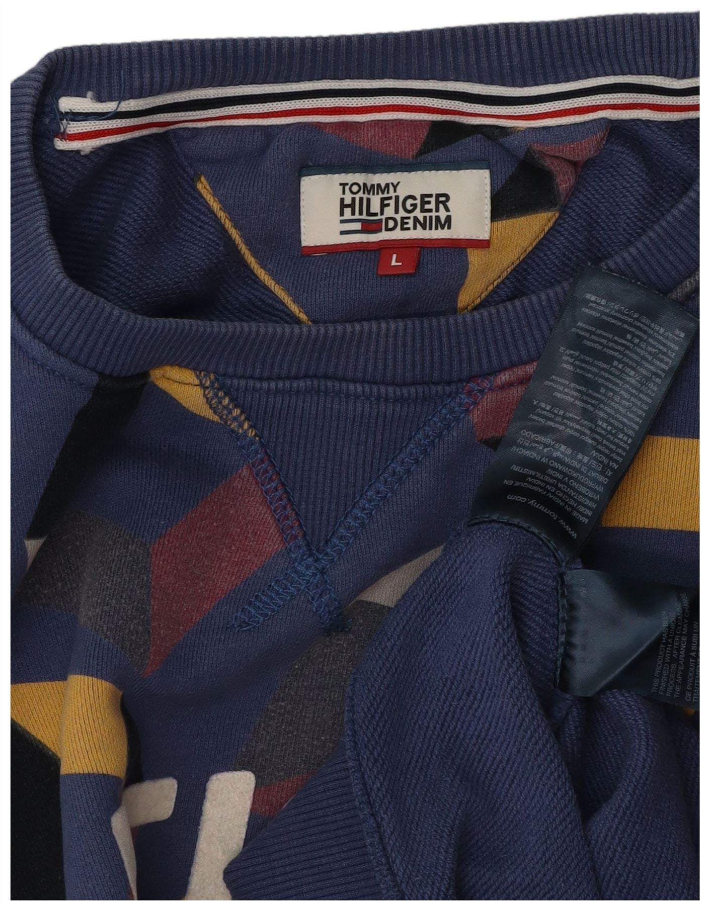 TOMMY HILFIGER Mens Graphic Sweatshirt Jumper Large Blue Geometric Cotton